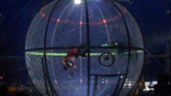 En un desafortunado movimiento un motociclista latino sufrió una terrible caída mientras intentaba desafiar a la muerte dentro de una gigantesca esfera. El accidente tuvo lugar en el Demidovs Circus de la ciudad de Kémerovo, en Rusia, el pasado 28 de julio y apesar del fuerte golpe, el motociclista no sufrió lesiones de consideración.