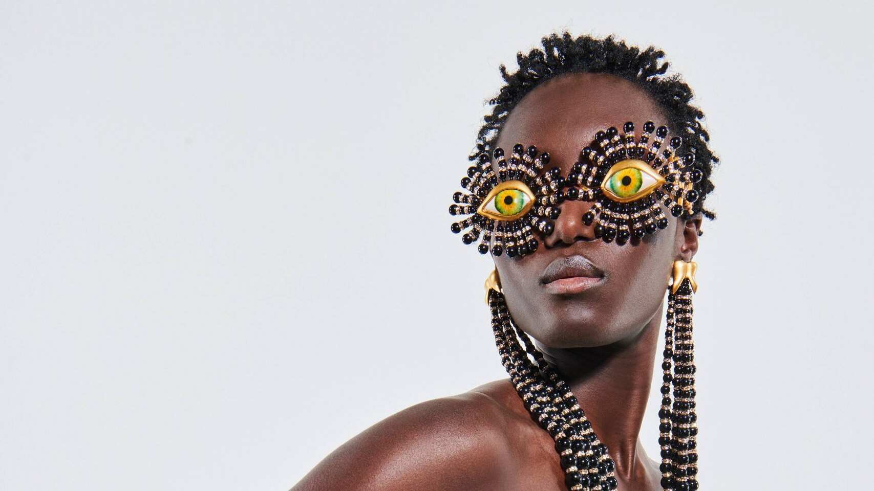 Daniel Roseberry ha sabido homenajear más allá de la literalidad, el legado de Elsa Schiaparelli. En su tercera colección para la casa, vuelve a enfocarse en la joyería y en la exploración de siluetas y materiales para jugar con las formas envolventes del cuerpo, tomando como punto de partida el surrealismo statement que ha sido insignia de la casa en toda su historia. Y le ha funcionado: de hecho, piezas de joyería como las gafas en formas de ojo ya se han agotado en preorder.