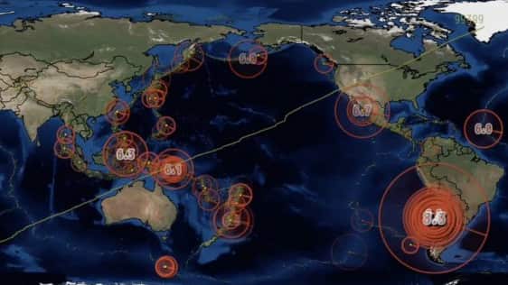 Este video publicado por «EQForecaster» en su canal de YouTube muestra las zonas donde se produjeron sismos de importancia desde enero del 2015 y hasta febrero del 2016. La gráfica permite apreciar el terremoto 8.3 ocurrido en Chile en septiembre del año pasado. Video: EQForecaster/YouTube
