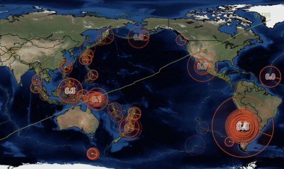 Este video publicado por «EQForecaster» en su canal de YouTube muestra las zonas donde se produjeron sismos de importancia desde enero del 2015 y hasta febrero del 2016. La gráfica permite apreciar el terremoto 8.3 ocurrido en Chile en septiembre del año pasado. Video: EQForecaster/YouTube