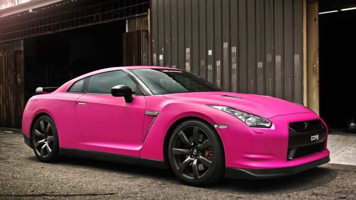 El espectacular superdeportivo japonés Nissan Gt-R, también se ha visto en un rosado furioso, llamando la atención por este curioso color para un auto que muchos creerían está hecho solo para hombres rudos.
