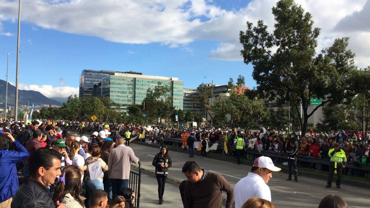 Un gran número de estos fieles se reunió en el sector de la estación de TransMilenio Ciudad Universitaria, y la comitiva papal causó que el recorrido de la comitiva papal fuera extremadamente lento. Incluso, en algunos momentos se vieron muy comprometidos los esquemas de seguridad para poder lograr que el sumo pontífice avanzara.