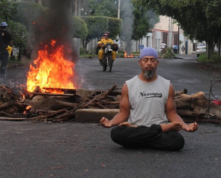 El objetivo principal de la meditación es concentrarse y poco a poco relajar la mente hasta liberar la conciencia. Una práctica que recomienda el instructor Anthoy Alcalde Pérez, en estos tiempos de crisis sociopolítica en su país, y que él mismo ha decidido realizar en rotondas, parques y hace algunas semanas en las barricadas de la capital nicaragüense.