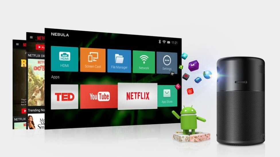 – Nebula Capsule encaja con mucha tecnología en una forma del tamaño de una lata de refresco. En primer lugar, la cápsula es capaz de proyectar una imagen de hasta 100 pulgadas de diámetro con un brillo de 100 lúmenes ANSI. La utilización de un sistema operativo Android 7.1 permite al consumidor acceder a aplicaciones como Netflix y YouTube. Además, la cápsula puede reproducir vídeo durante unas 4 horas, pero también puede utilizarse como altavoz Bluetooth durante 30 horas. Por último, todo el dispositivo pesa sólo 420 gramos, lo que lo convierte en una opción de entretenimiento doméstico extremadamente portátil.
