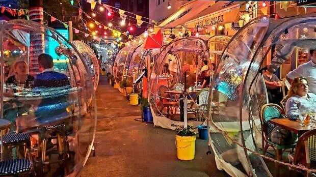 Es así como el resturante francés Café du Soleil, ubicado en la calle 104 y Broadwey, del Upper West Side de Manhattan, optó por crear búbujas de plástico para que sus visitantes se sientan más cómodos y confortables.