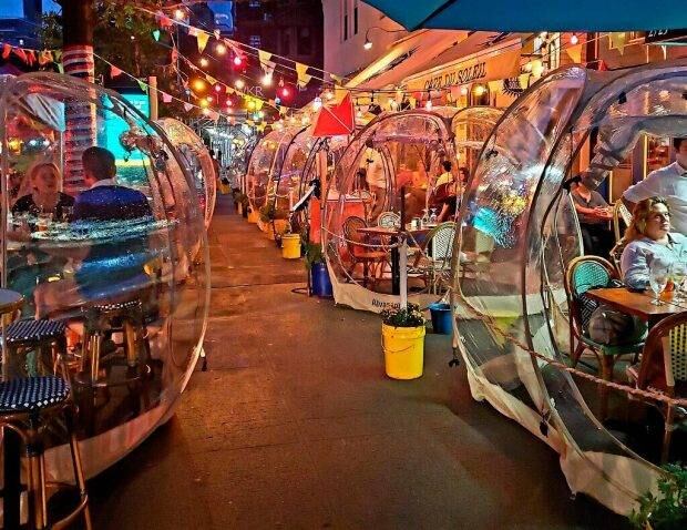 Es así como el resturante francés Café du Soleil, ubicado en la calle 104 y Broadwey, del Upper West Side de Manhattan, optó por crear búbujas de plástico para que sus visitantes se sientan más cómodos y confortables.