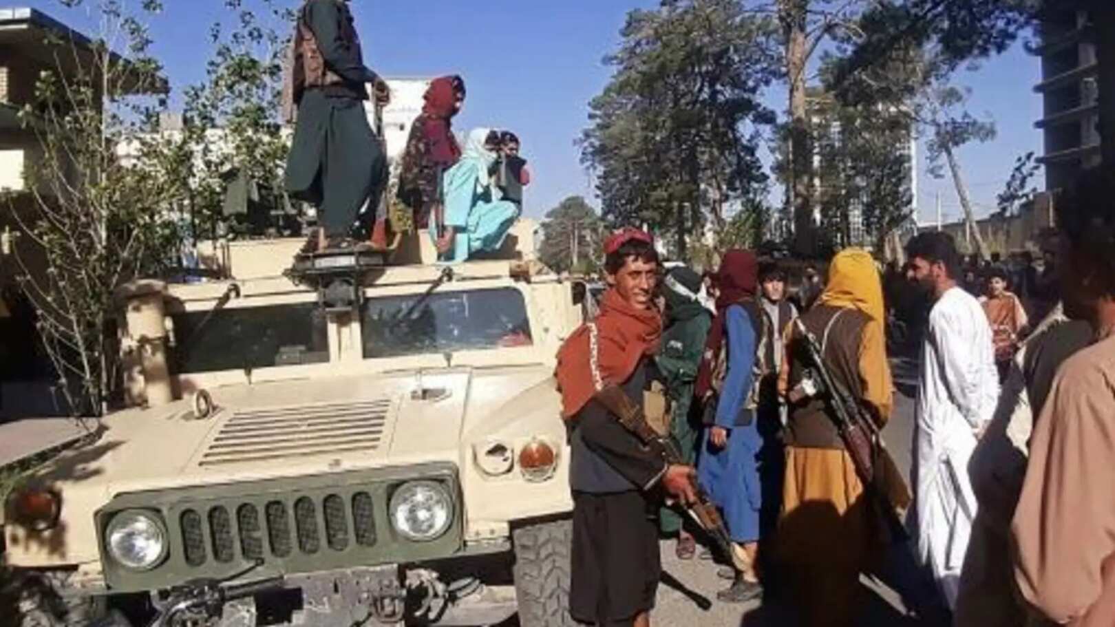 Los miembros del grupo terrorista iban sentados al mando de los Humvees, que fueron utilizados durante dos décadas por las fuerzas militares estadounidenses, afganas y de la Organización del Tratado del Atlántico Norte (OTAN).