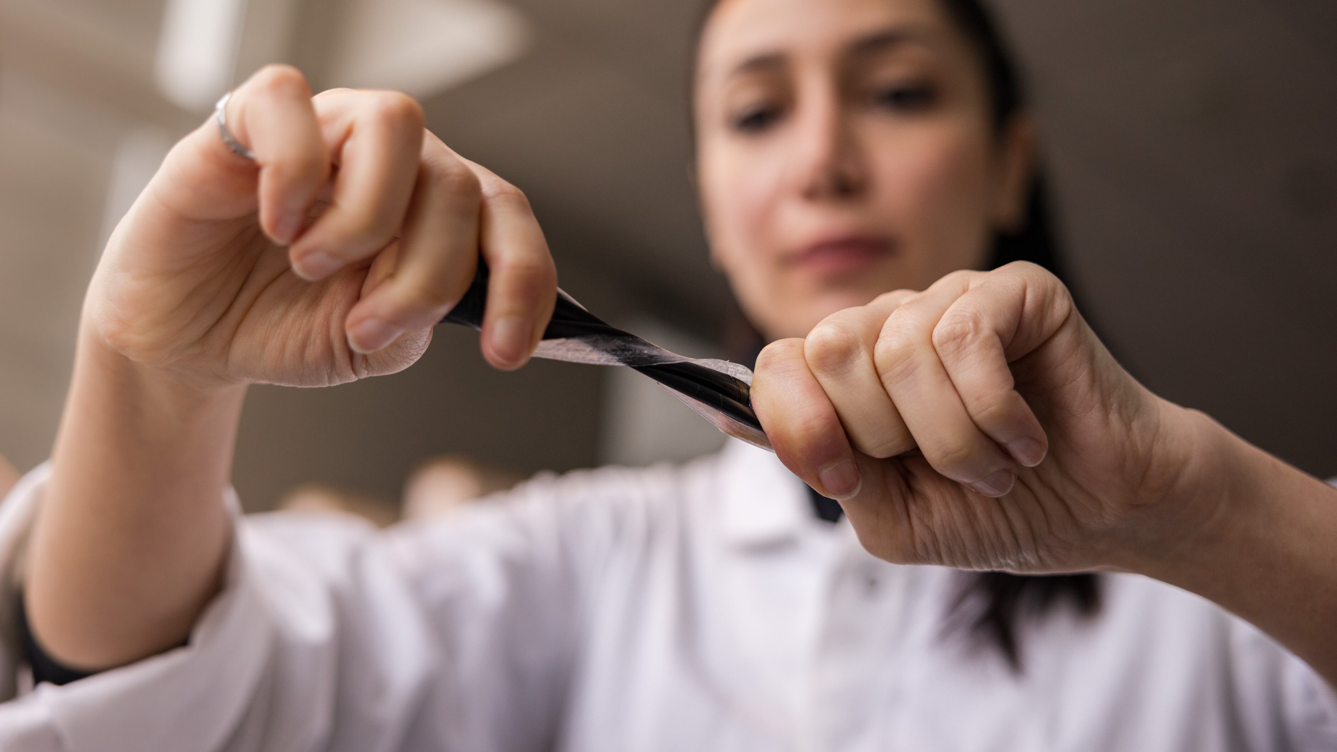 El equipo de la UBC consiguió que los compuestos clave de la pila -el zinc y el dióxido de manganeso- fueran estirables moliéndolos en pequeños trozos e incrustándolos en un plástico gomoso, o polímero. En las baterías normales, las capas internas son materiales duros encerrados en un exterior rígido.