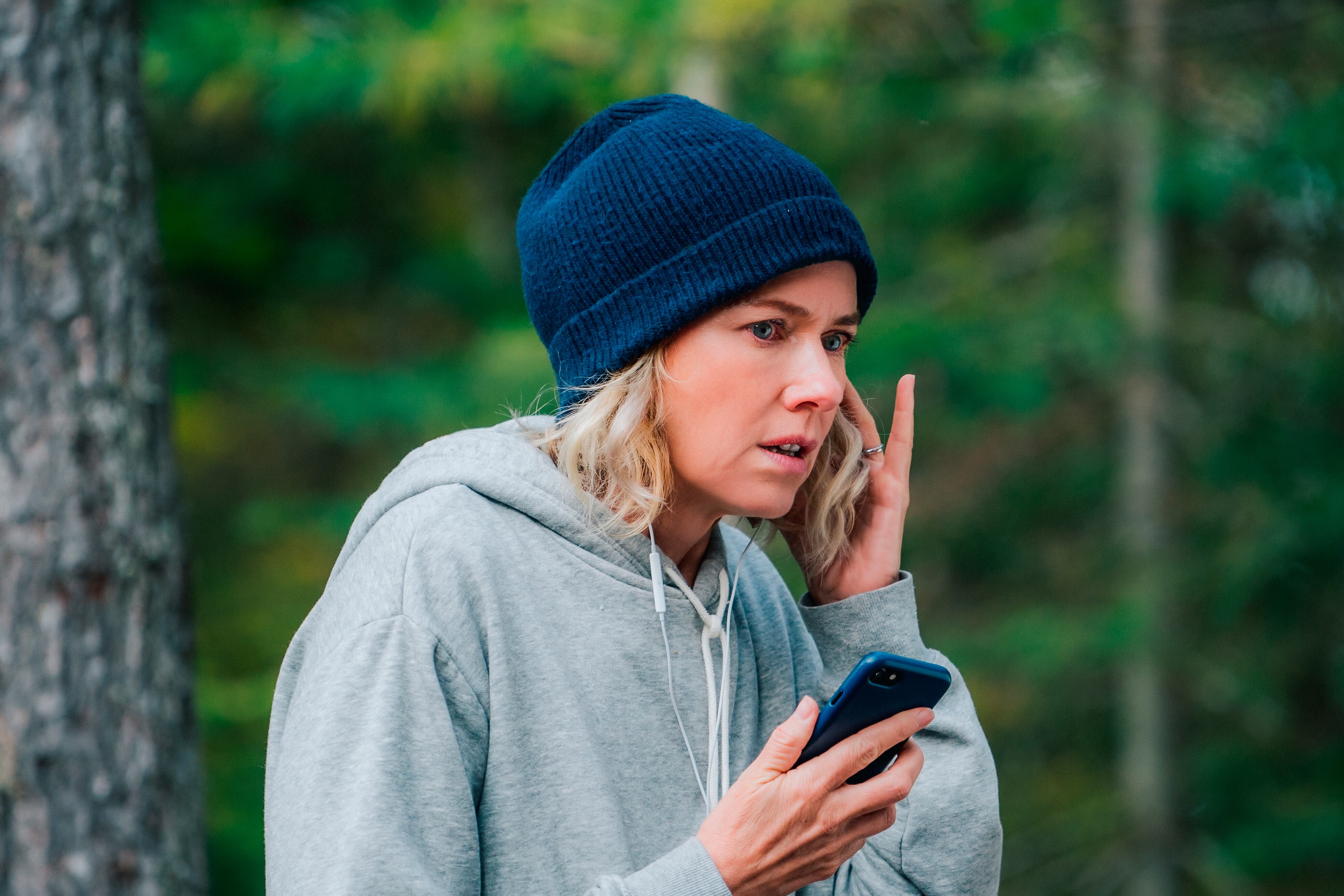 Perdida en el bosque, el teléfono es su único vínculo con el mundo.
