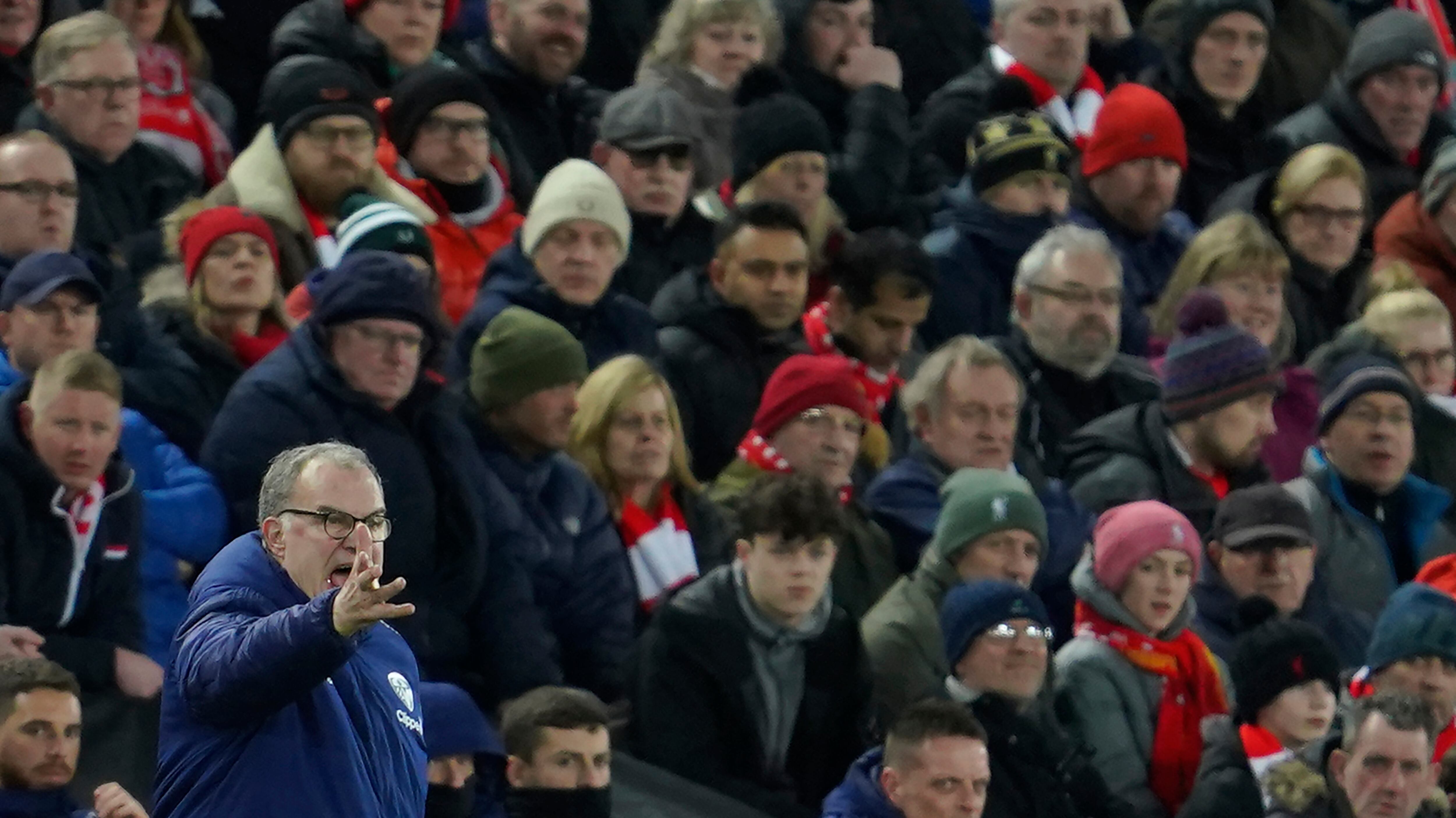 El técnico de Leeds Marcelo Bielsa durante el partido contra Liverpool por la Liga Premier, el miércoles 23 de febrero de 2022. (AP Foto/Jon Super) El técnico de Leeds Marcelo Bielsa durante el partido contra Liverpool por la Liga Premier, el miércoles 23 de febrero de 2022. (AP Foto/Jon Super) (Jon Super/AP)