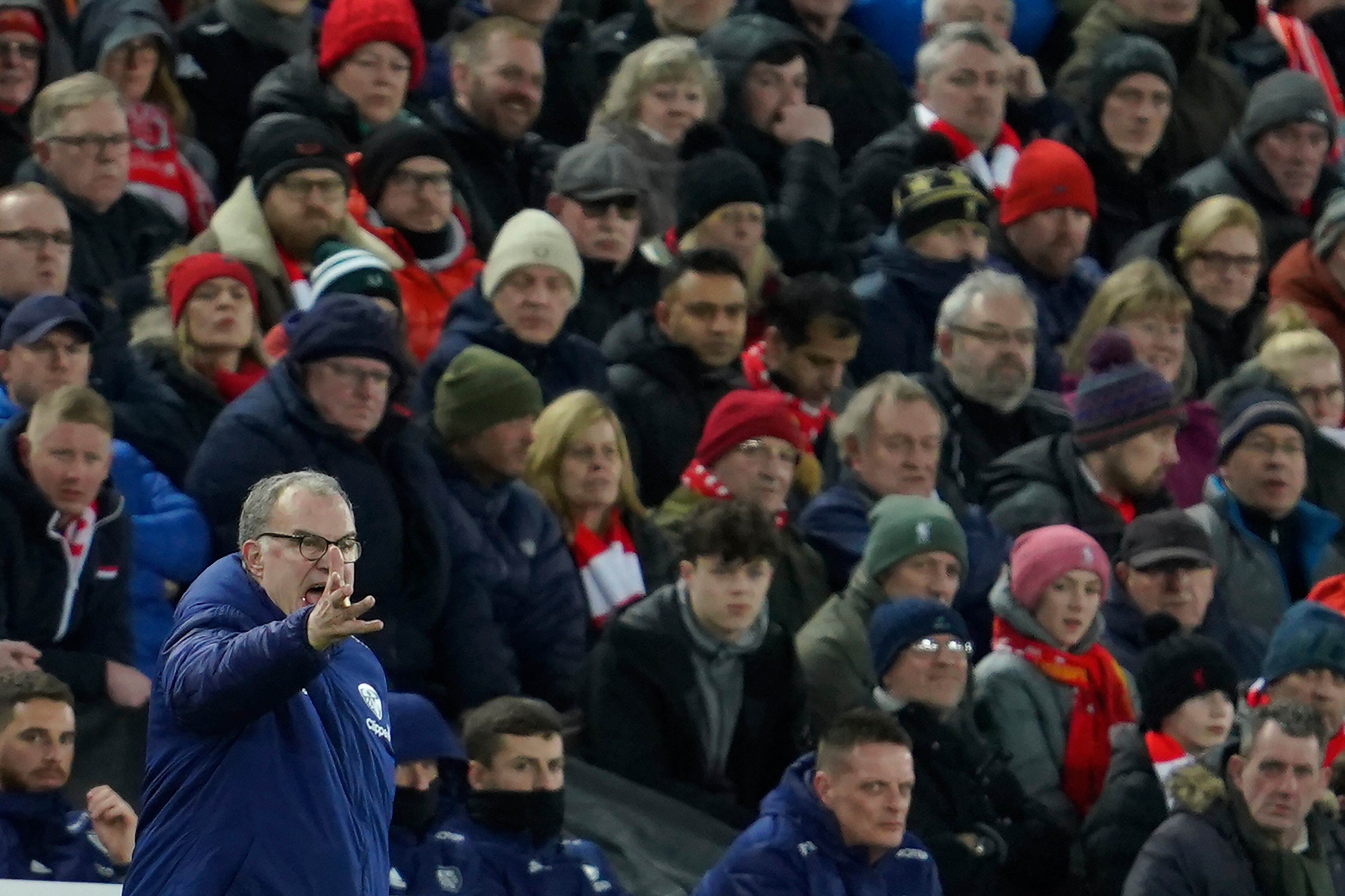 El técnico de Leeds Marcelo Bielsa durante el partido contra Liverpool por la Liga Premier, el miércoles 23 de febrero de 2022. (AP Foto/Jon Super) El técnico de Leeds Marcelo Bielsa durante el partido contra Liverpool por la Liga Premier, el miércoles 23 de febrero de 2022. (AP Foto/Jon Super) (Jon Super/AP)