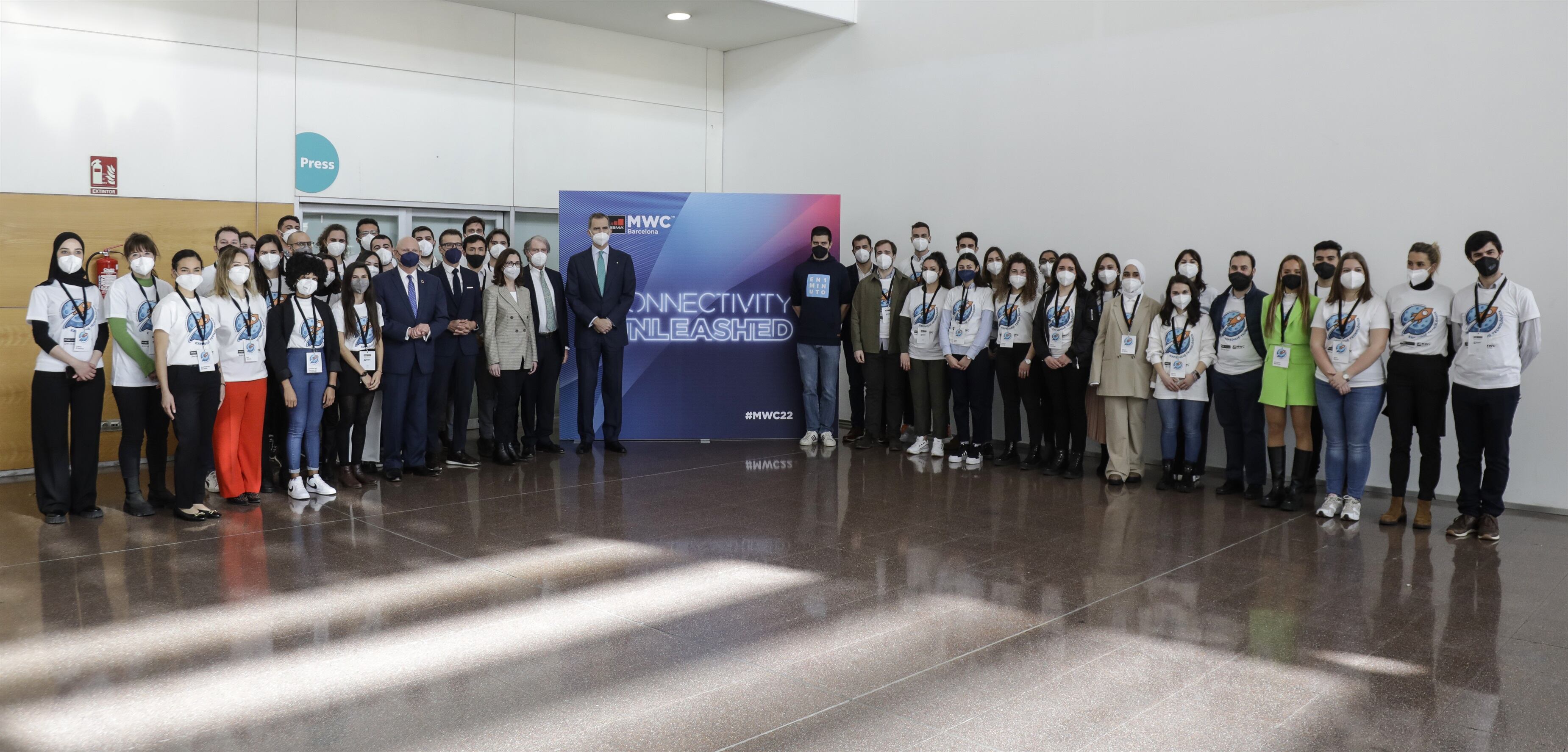 Cuarenta jóvenes de los programas de Desarrollo profesional y Transformación educativa de la Fundación Princesa de Girona (FPdGi) han mantenido este lunes un encuentro informal con el rey Felipe VI, en el marco del Mobile World Congress (MWC).