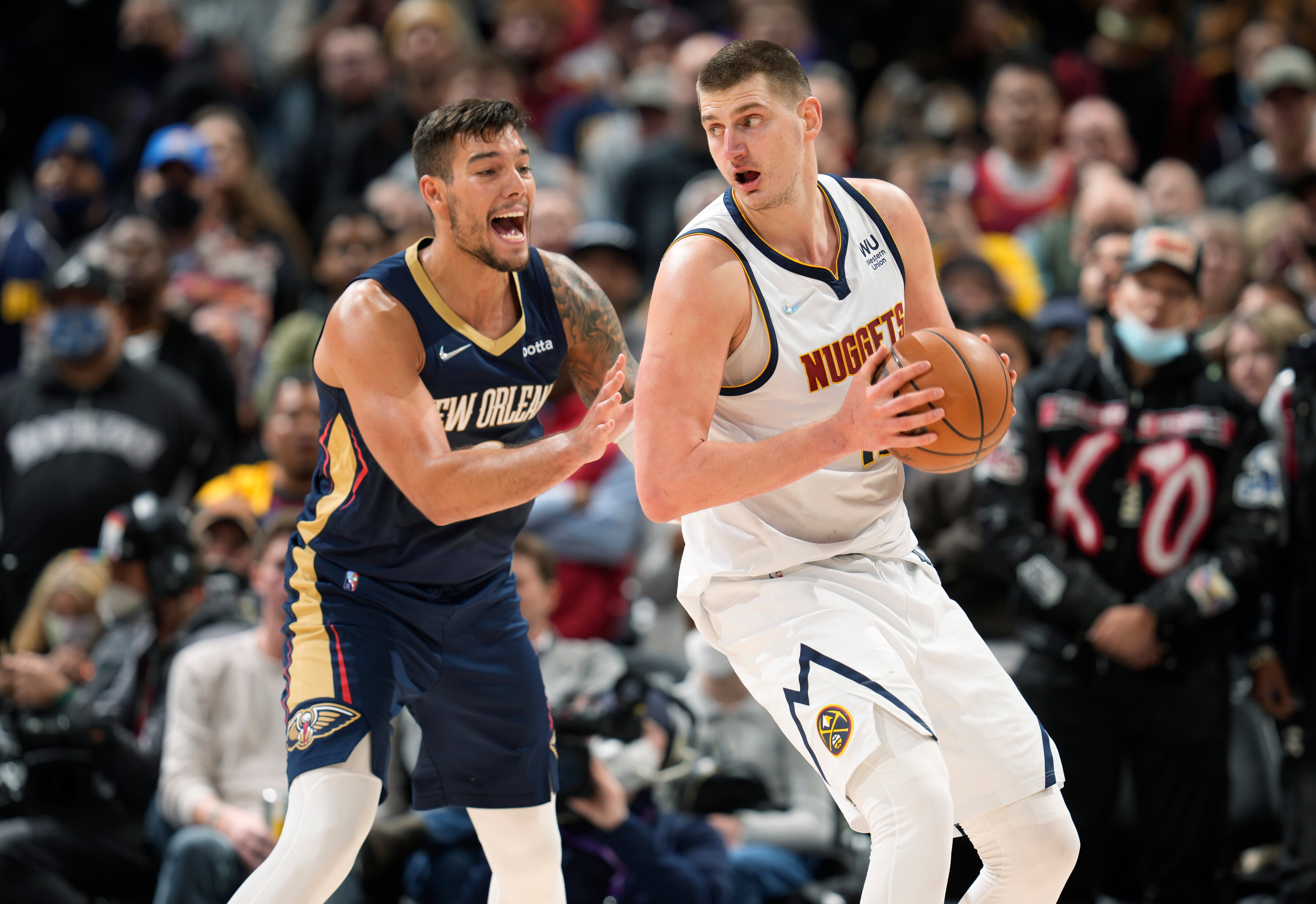 Los Nuggets ganaban 34-13 con 1:27 minutos restantes en el primer cuarto. Los Pelicans se metieron al partido metódicamente, acercándose a cinco tantos al medio tiempo cortesía de un enceste de media cancha de Ingram con el reloj casi en ceros.