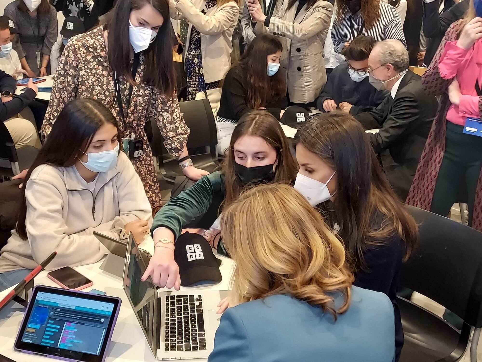Los reyes mostraron su interés y trasladaron su felicitación a las estudiantes por su desempeño en el taller ‘Let’s Code: aprender a programar en edades tempranas’, según informa el centro educativo en una nota de prensa.