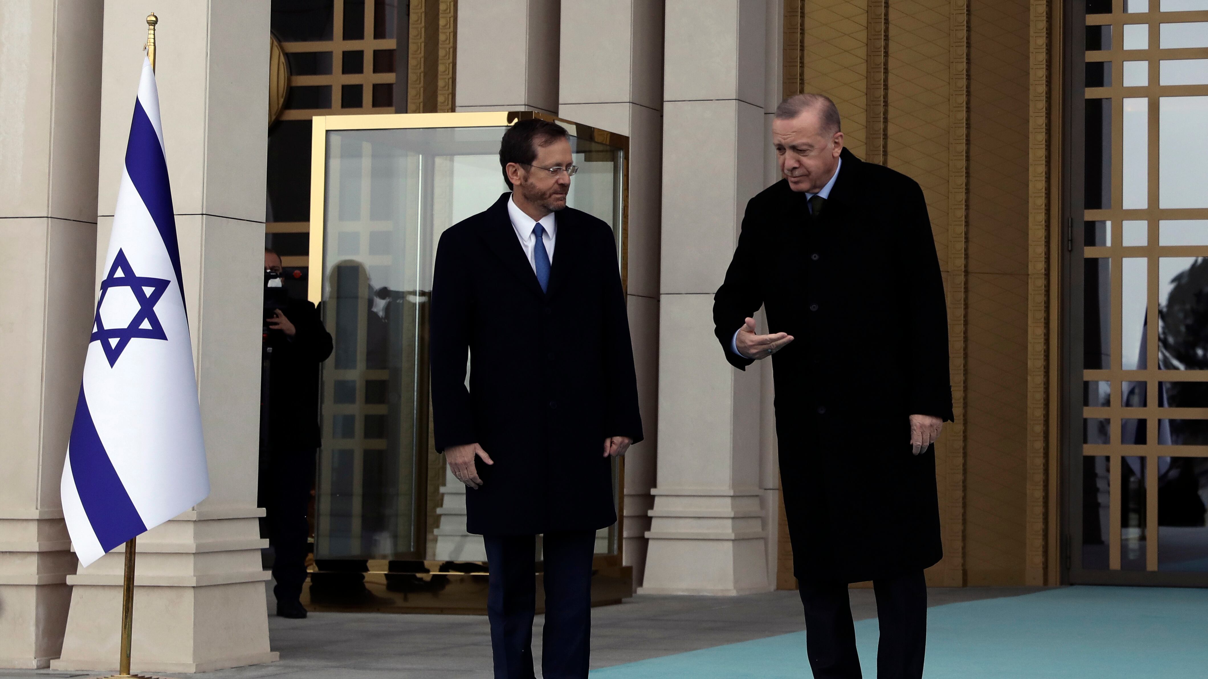Erdogan y una guardia de honor militar lo recibieron mientras una banda tocaba el himno israelí por primera vez desde 2008.
