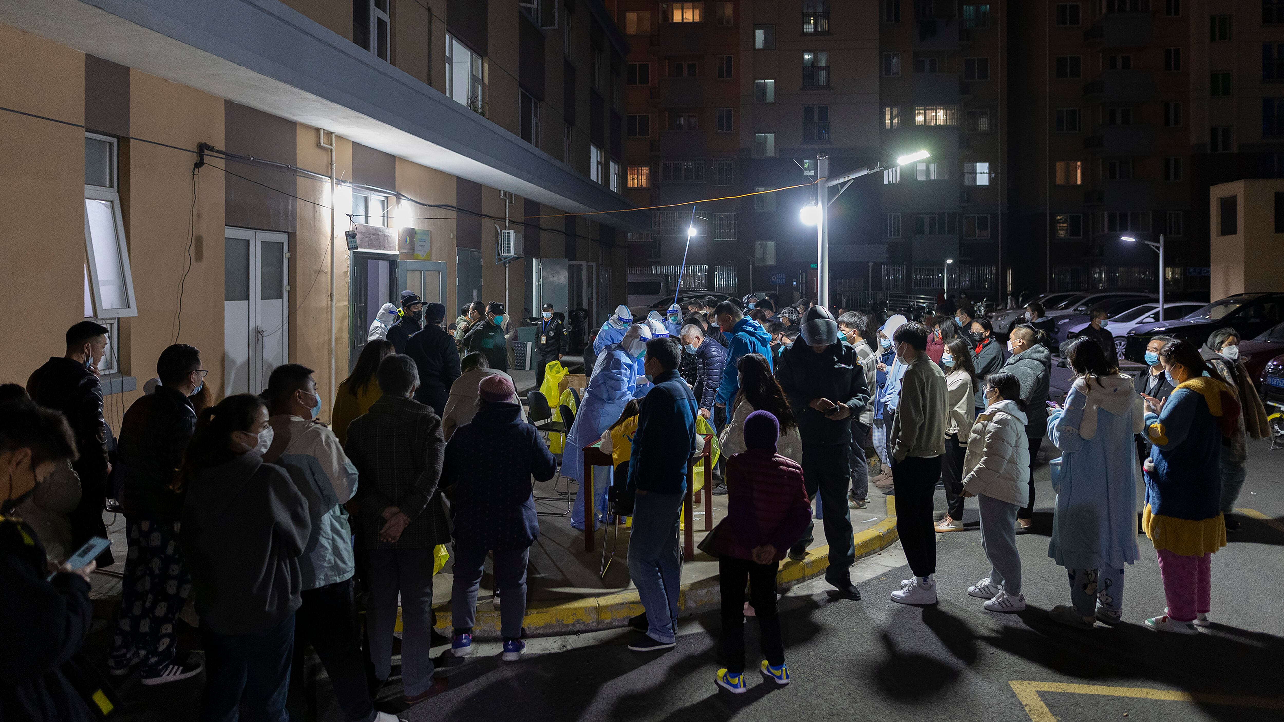 Un grupo de personas espera en fila para someterse a una prueba de detección del coronavirus en una zona residencial de Shanghai, el 10 de marzo de 2022. (AP Foto) Un grupo de personas espera en fila para someterse a una prueba de detección del coronavirus en una zona residencial de Shanghai, el 10 de marzo de 2022. (AP Foto) (AP)