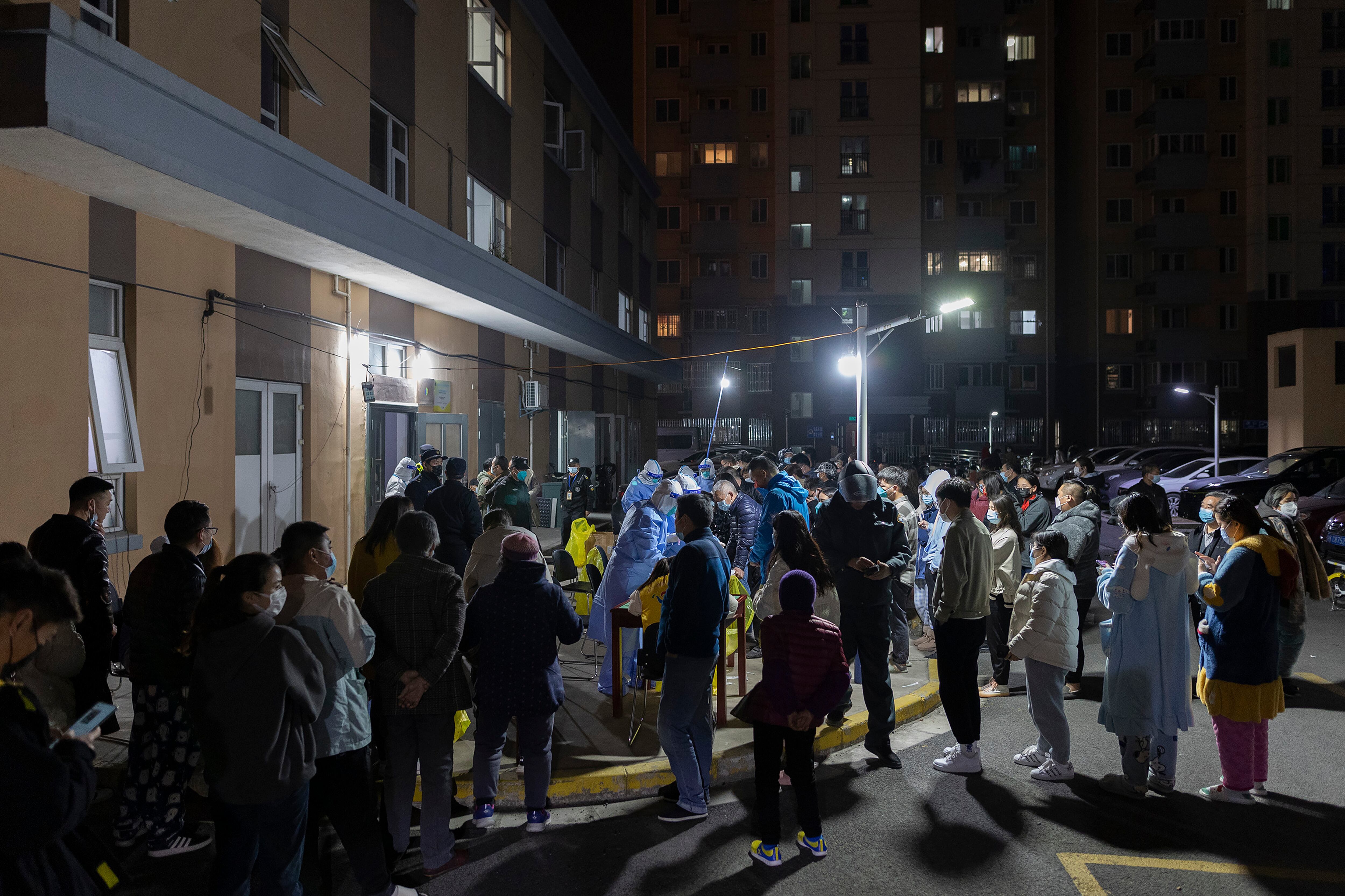 Un grupo de personas espera en fila para someterse a una prueba de detección del coronavirus en una zona residencial de Shanghai, el 10 de marzo de 2022. (AP Foto) Un grupo de personas espera en fila para someterse a una prueba de detección del coronavirus en una zona residencial de Shanghai, el 10 de marzo de 2022. (AP Foto) (AP)