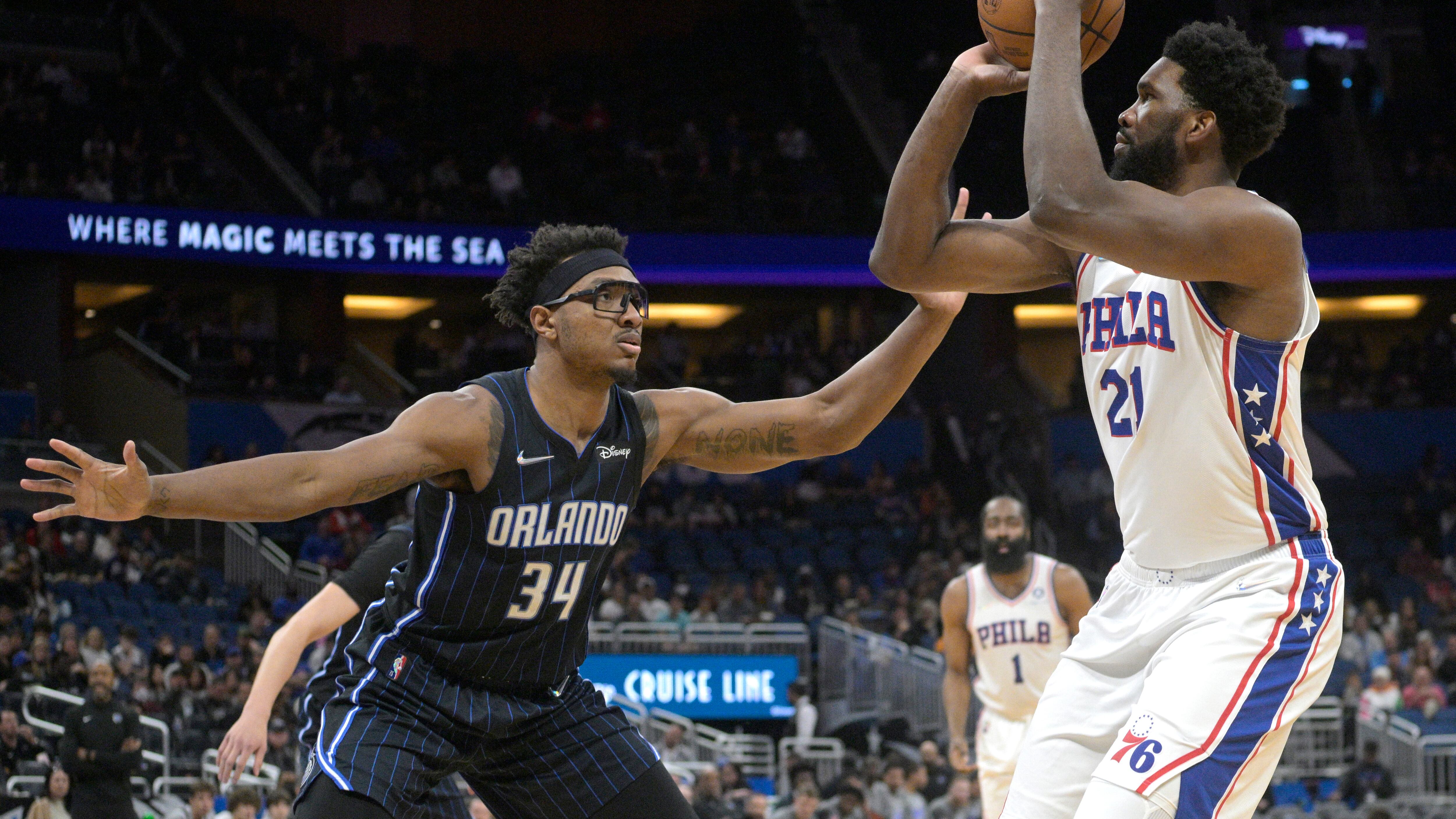 James Harden encestó uno de dos tiros libres con 6,7 segundos restantes del tiempo adicional para dar a Filadelfia una ventaja de dos puntos. Cole Anthony erró un triple por Orlando en el último momento del partido.