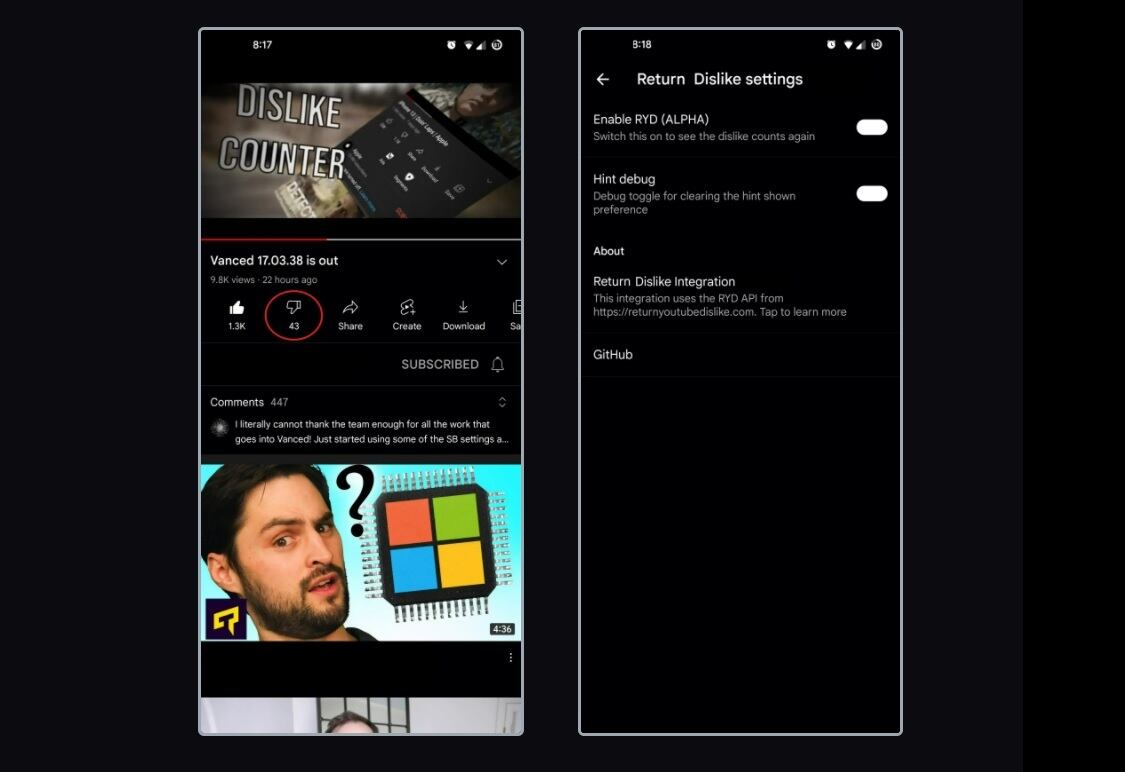 Esta versión de YouTube ofrece funciones extra, como la capacidad de visualizar contenidos sin anuncios -algo solo disponible con YouTube Premium, de pago- o en un segundo plano, la integración del botón ‘no me gusta’ o un tema oscuro para pantallas AMOLED.