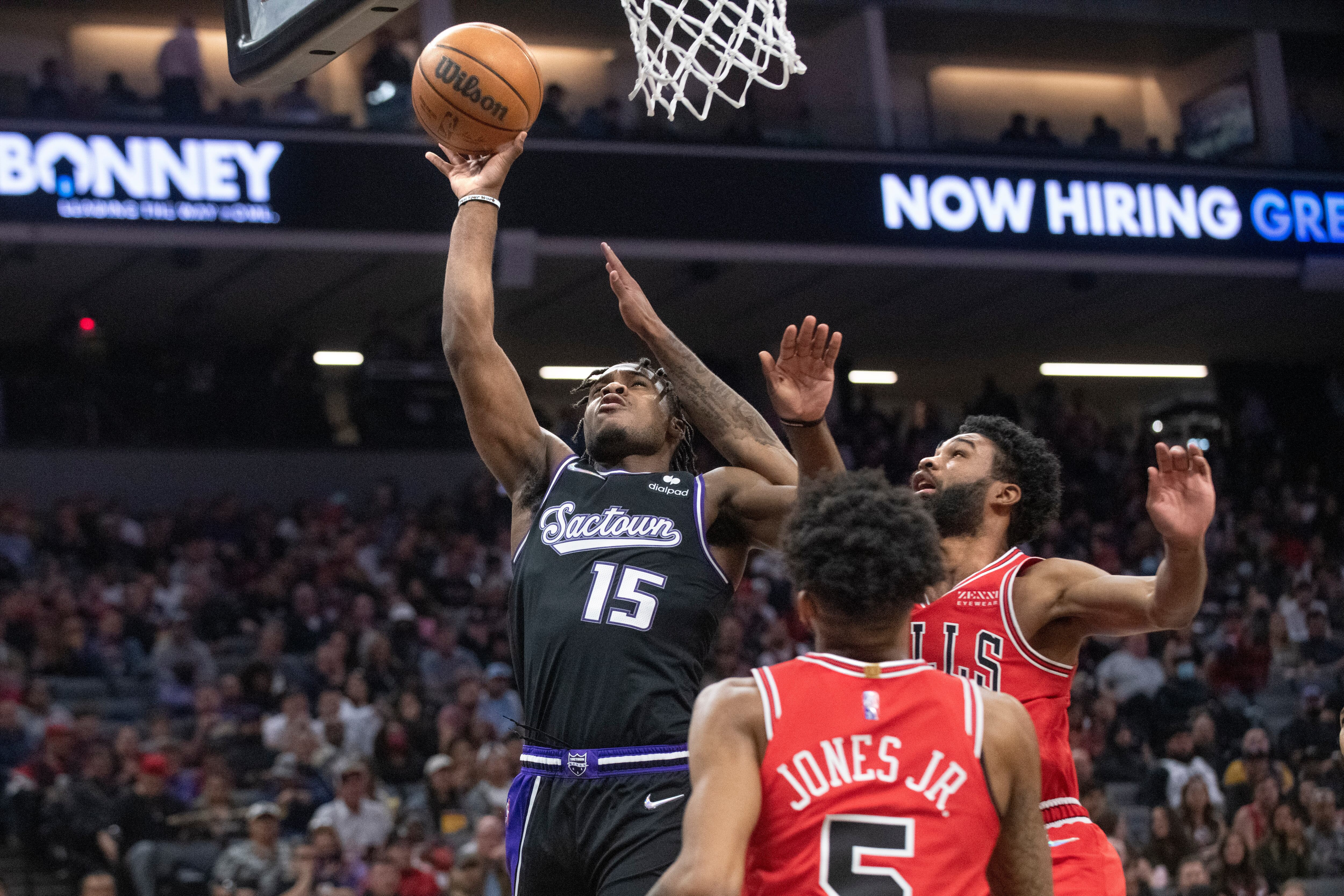 Después de que Coby White fallara un triple que habría puesto a los Bulls en cabeza, Fox anotó en una bandeja, Trey Lyles encestó uno de dos tiros libres y DiVincenzo añadió un triple.