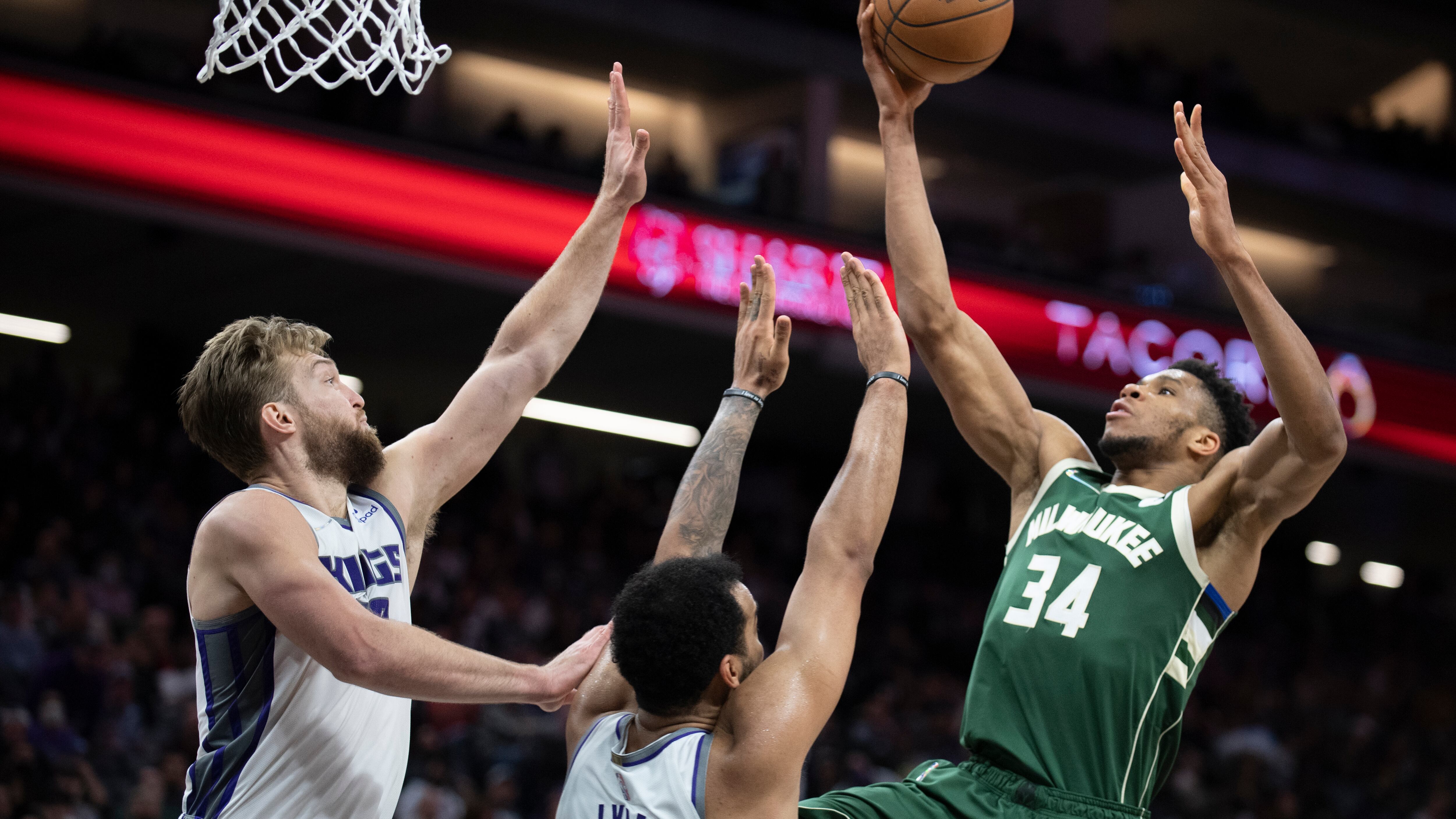 SACRAMENTO, California, EE.UU. (AP) — Giannis Antetokounmpo totalizó 36 puntos y 10 rebotes, Wesley Matthews logró un triple clave a 1:32 minutos del final, y los Bucks de Milwaukee se impusieron el miércoles 135-126 sobre los Kings de Sacramento.
