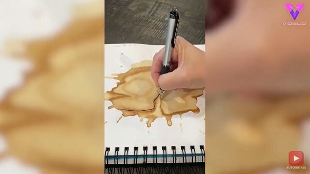 En su vídeo más popular, que cuenta con casi 10 millones de reproducciones, la joven creaba la ilustración de un roedor con un trozo de queso a partir de una mancha de café que ella misma derramaba.