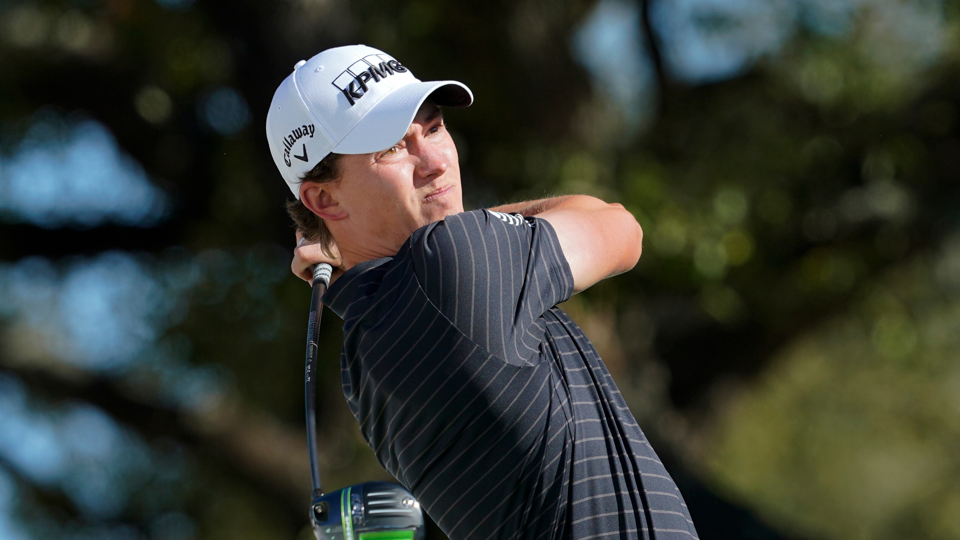 Maverick McNealy durante su tiro de salida en el primer hoyo de la primera ronda del Match Play Championship, el miércoles 23 de marzo de 2022, en Austin, Texas. (AP Foto/Tony Gutierrez) (Tony Gutierrez/AP)