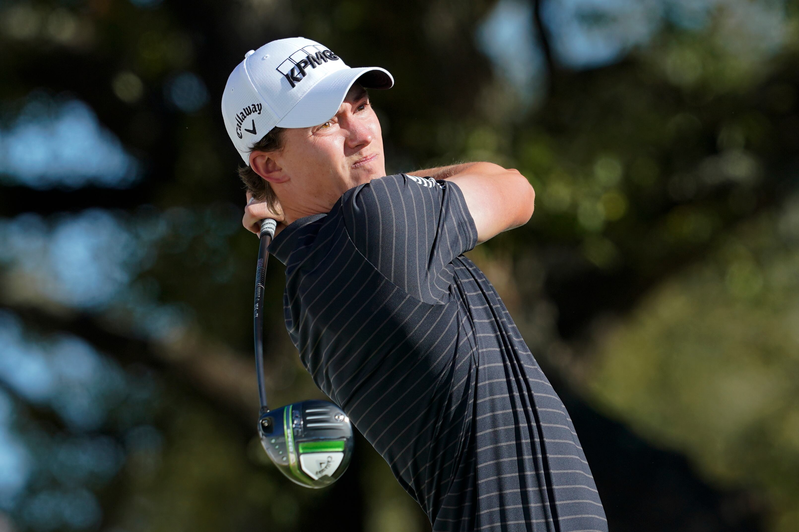 Maverick McNealy durante su tiro de salida en el primer hoyo de la primera ronda del Match Play Championship, el miércoles 23 de marzo de 2022, en Austin, Texas. (AP Foto/Tony Gutierrez) (Tony Gutierrez/AP)