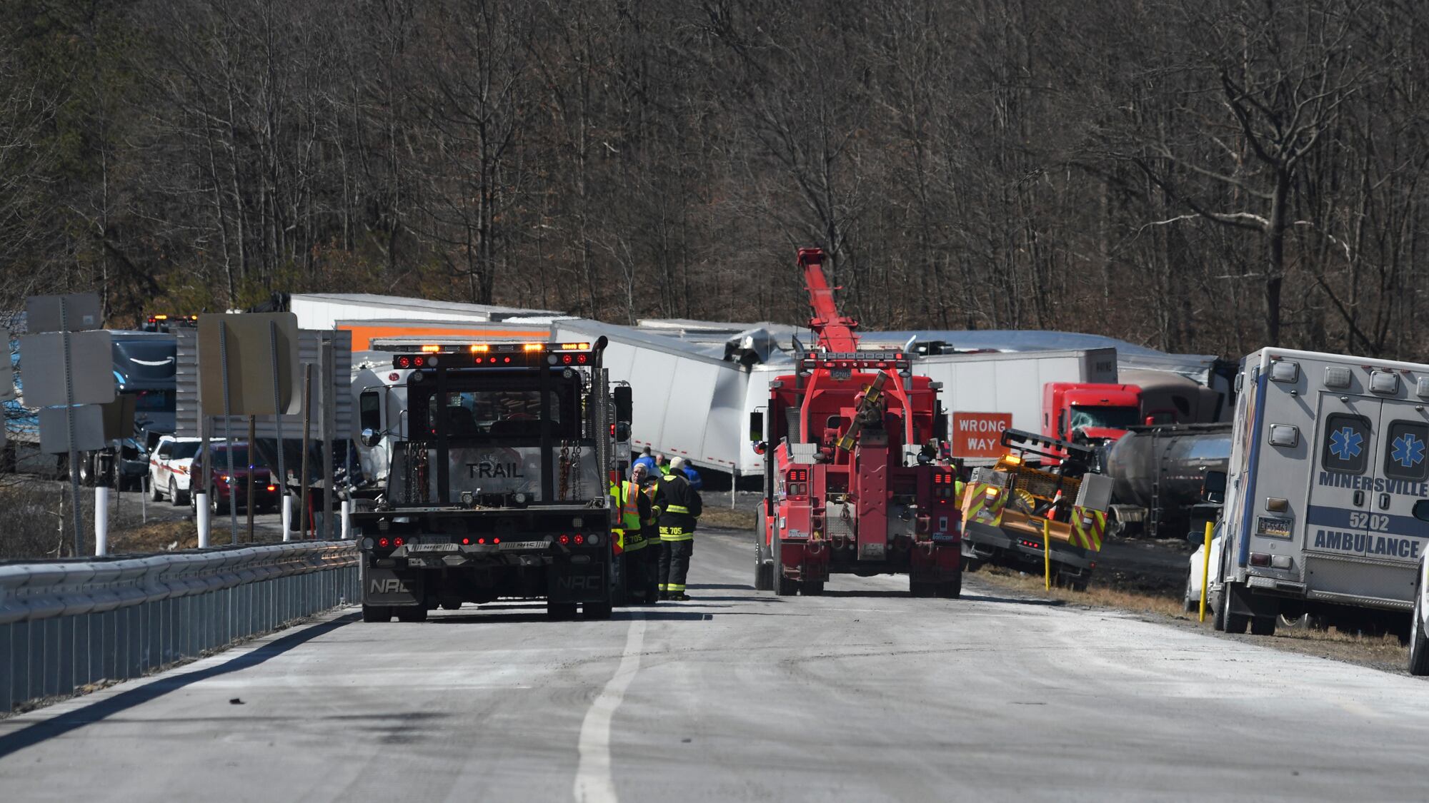 La escena después del choque múltiple ocurrido el 28 de marzo del 2022 cerca de condado Schuylkill en Pensilvania. (Lindsey Shuey/The Republican-Herald via AP) (Lindsey Shuey/AP)