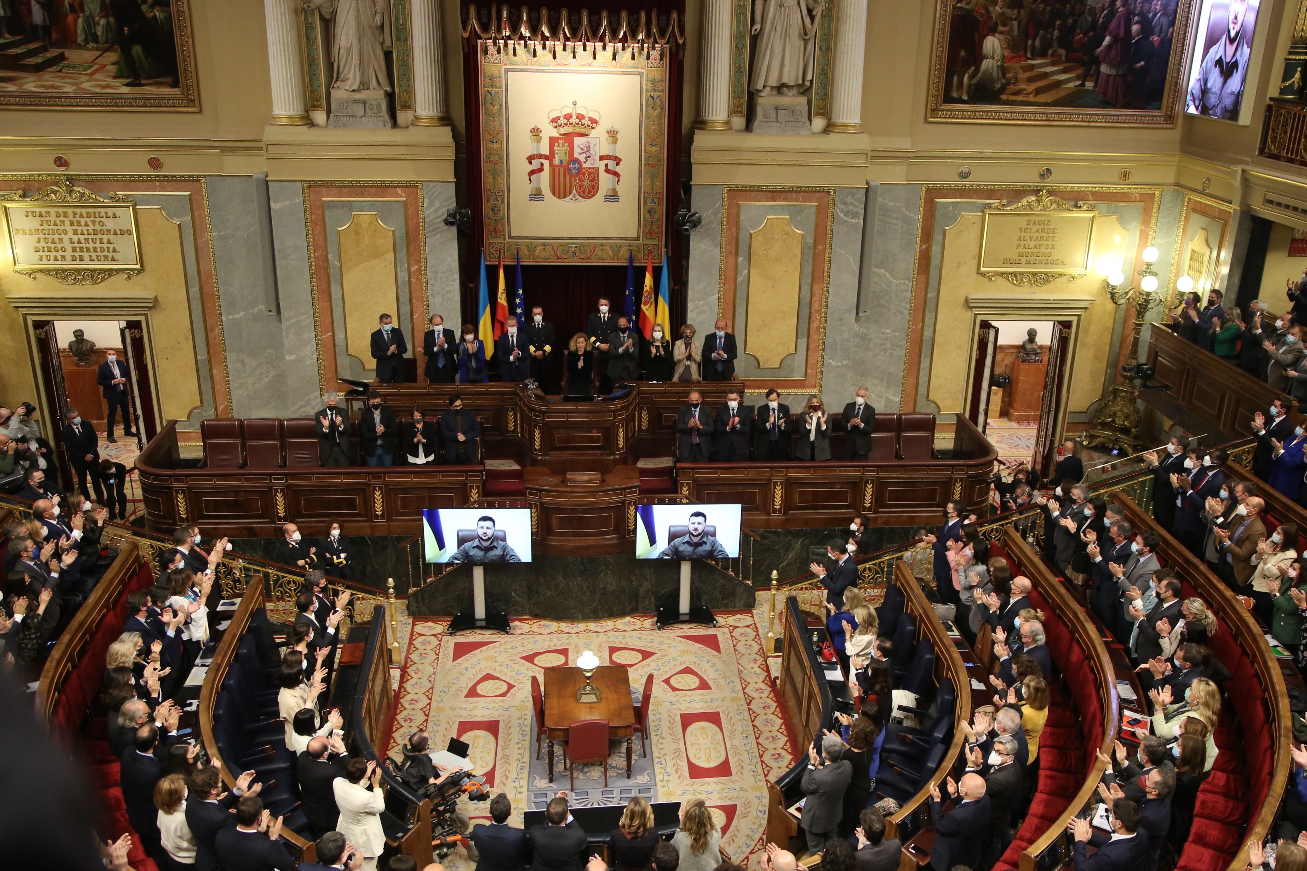 En su discurso, que han seguido diputados y senadores en el Pleno del Congreso de los Diputados mediante videoconferencia y con subtítulos, el mandatario ha dicho que «estamos en abril de 2022» pero parece «abril de 1937», en la Guerra Civil española, cuando Guernica fue bombardeada por la Legión Cóndor alemana y su población tuvo que esconderse en sótanos como hacen ahora los ucranianos ante la invasión por parte de Rusia.
