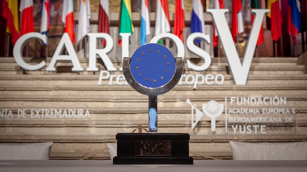La concesión del XV Premio Europeo Carlos V ha sido anunciada este jueves en Mérida por la directora general de Acción Exterior y presidenta de la Comisión Ejecutiva de la Fundación Academia Europea e Iberoamericana de Yuste, Rosa Balas, y el director de la fundación, Juan Carlos Moreno, anuncian el fallo del XV Premio Europeo Carlos V.