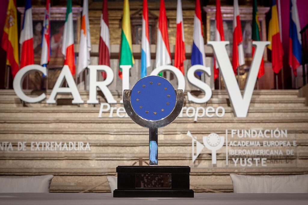 La concesión del XV Premio Europeo Carlos V ha sido anunciada este jueves en Mérida por la directora general de Acción Exterior y presidenta de la Comisión Ejecutiva de la Fundación Academia Europea e Iberoamericana de Yuste, Rosa Balas, y el director de la fundación, Juan Carlos Moreno, anuncian el fallo del XV Premio Europeo Carlos V.