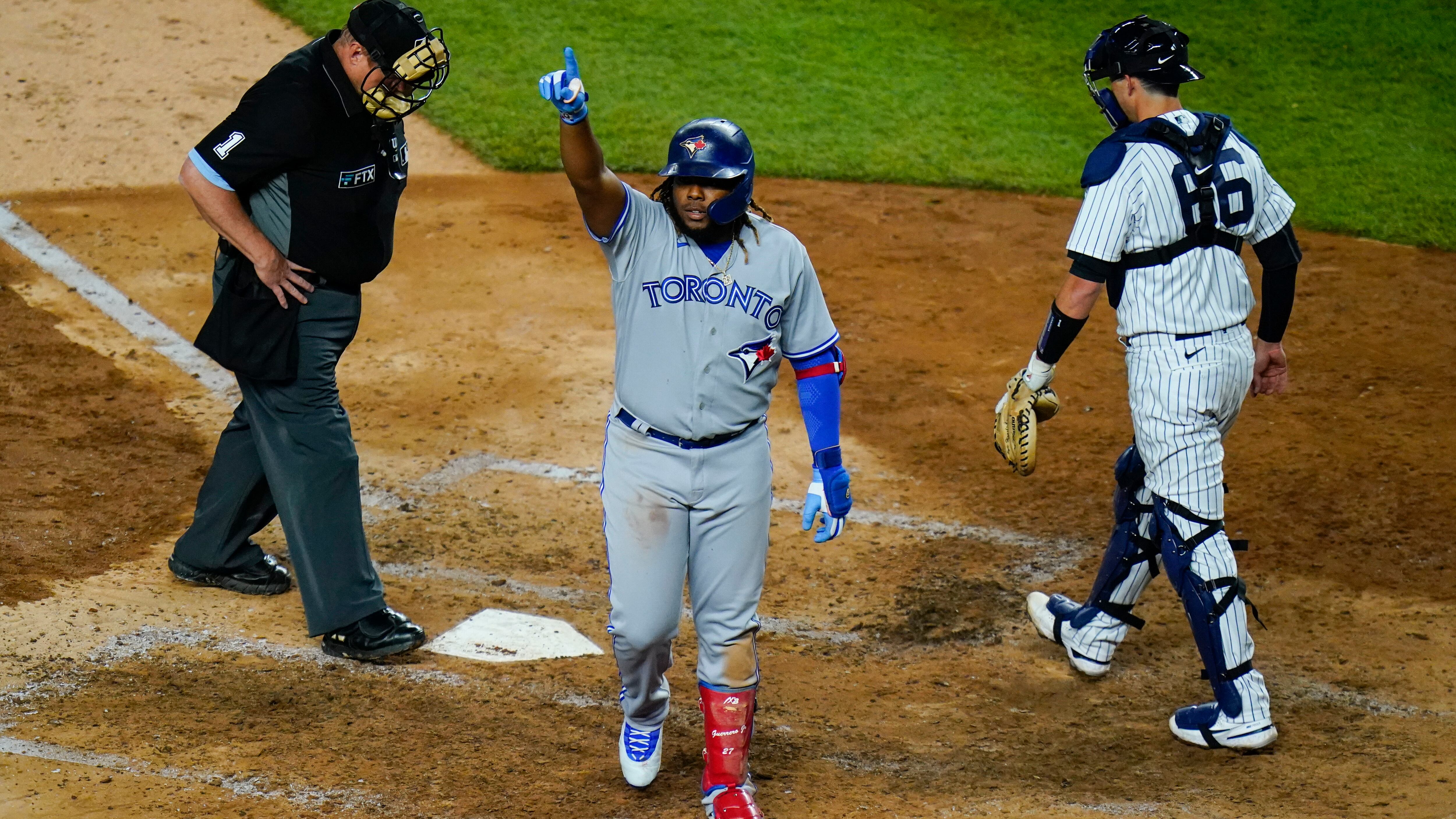 NUEVA YORK (AP) — Vladimir Guerrero Jr. se recuperó de una cortada en el dedo medio de la mano derecha para sacudir tres cuadrangulares, dos de ellos ante Gerrit Cole, y encaminó a los Azulejos de Toronto a una victoria el miércoles 6-4 sobre los Yanquis de Nueva York.