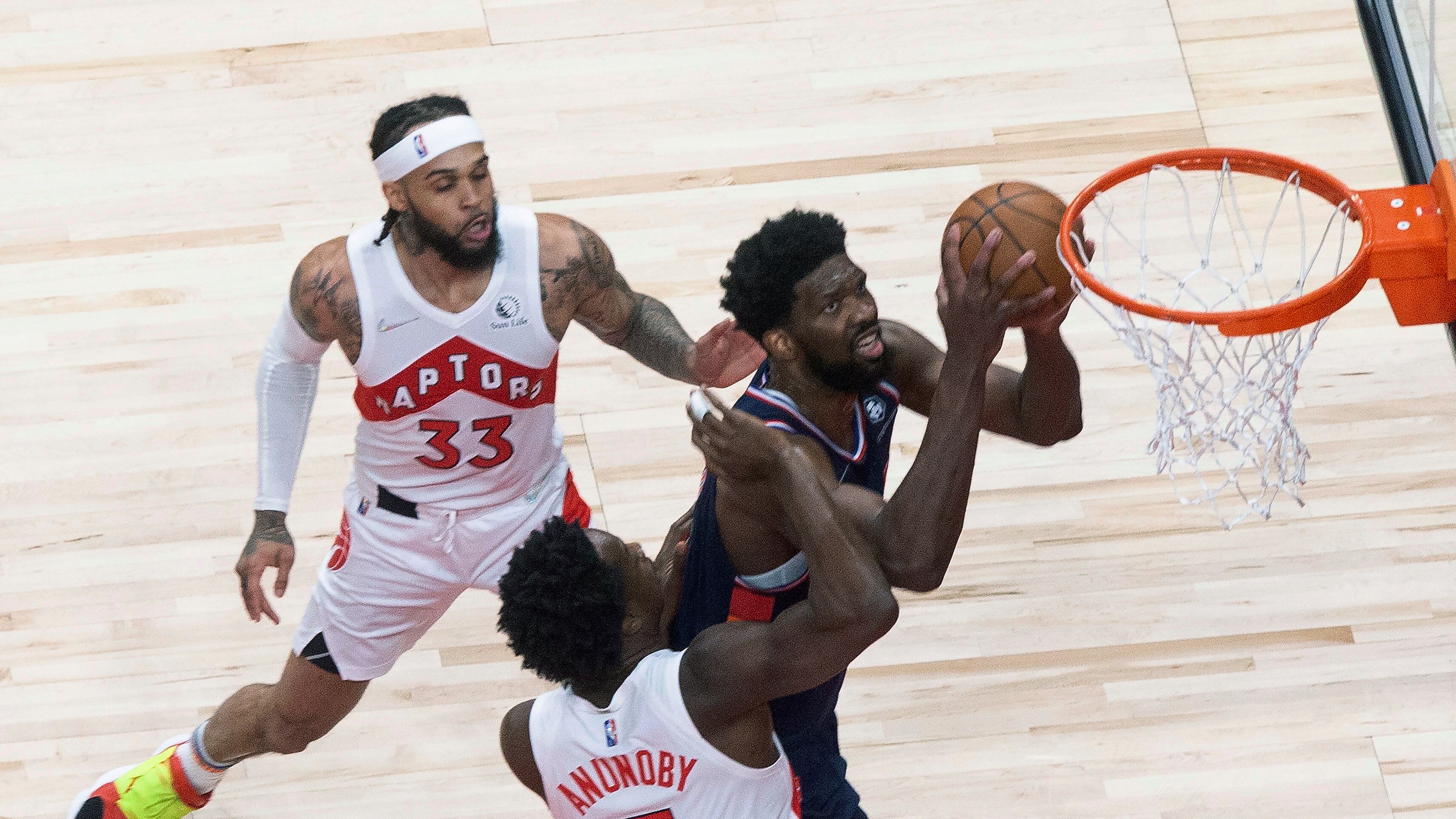TORONTO (AP) — Joel Embiid encestó un triple a 0,8 segundos del final del alargue y los 76ers de Filadelfia ganaron por 104-101 a los Raptors de Toronto el miércoles, con lo cual tomaron ventaja de 3-0 en la serie de primera ronda de la postemporada.