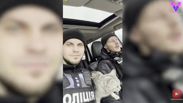El investigador policial Yevhen Danylenko, de Chernihiv (Ucrania), estaba con su compañero, también llamado Yevhen, cuando se encontraron con un gato abandonado.