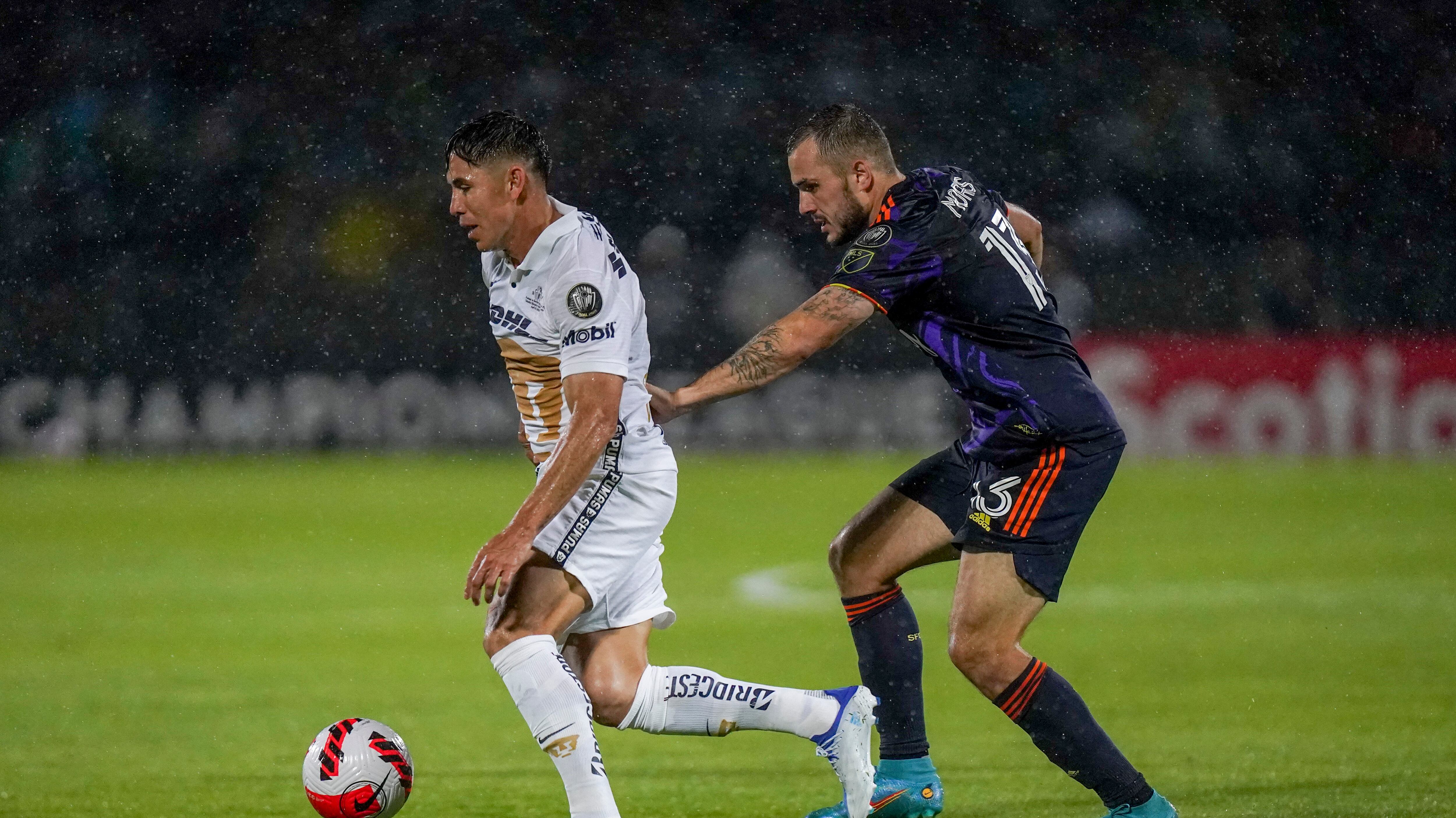 En un primer tiempo realizado bajo un aguacero torrencial en el Estadio Olímpico de la capital mexicana, Pumas generó la primera llegada de peligro a los 26 minutos con un disparo del brasileño Rogerio de Oliveira que fue rechazado por el portero Stefan Frei.
