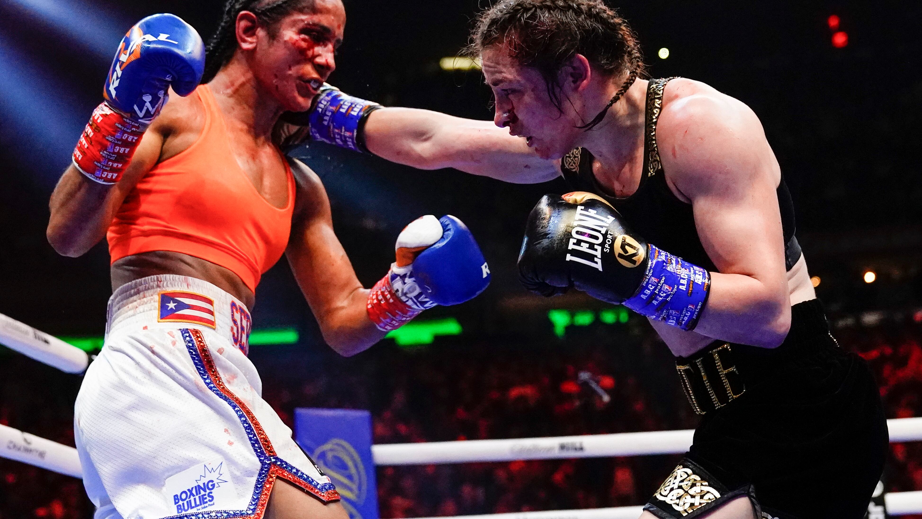 NUEVA YORK (AP) — Katie Taylor continuó como la monarca indiscutible de las ligeras tras imponerse el sábado por decisión dividida a Amanda Serrano, en el primer combate entre mujeres que ha encabezado una cartelera del Madison Square Garden en la historia.