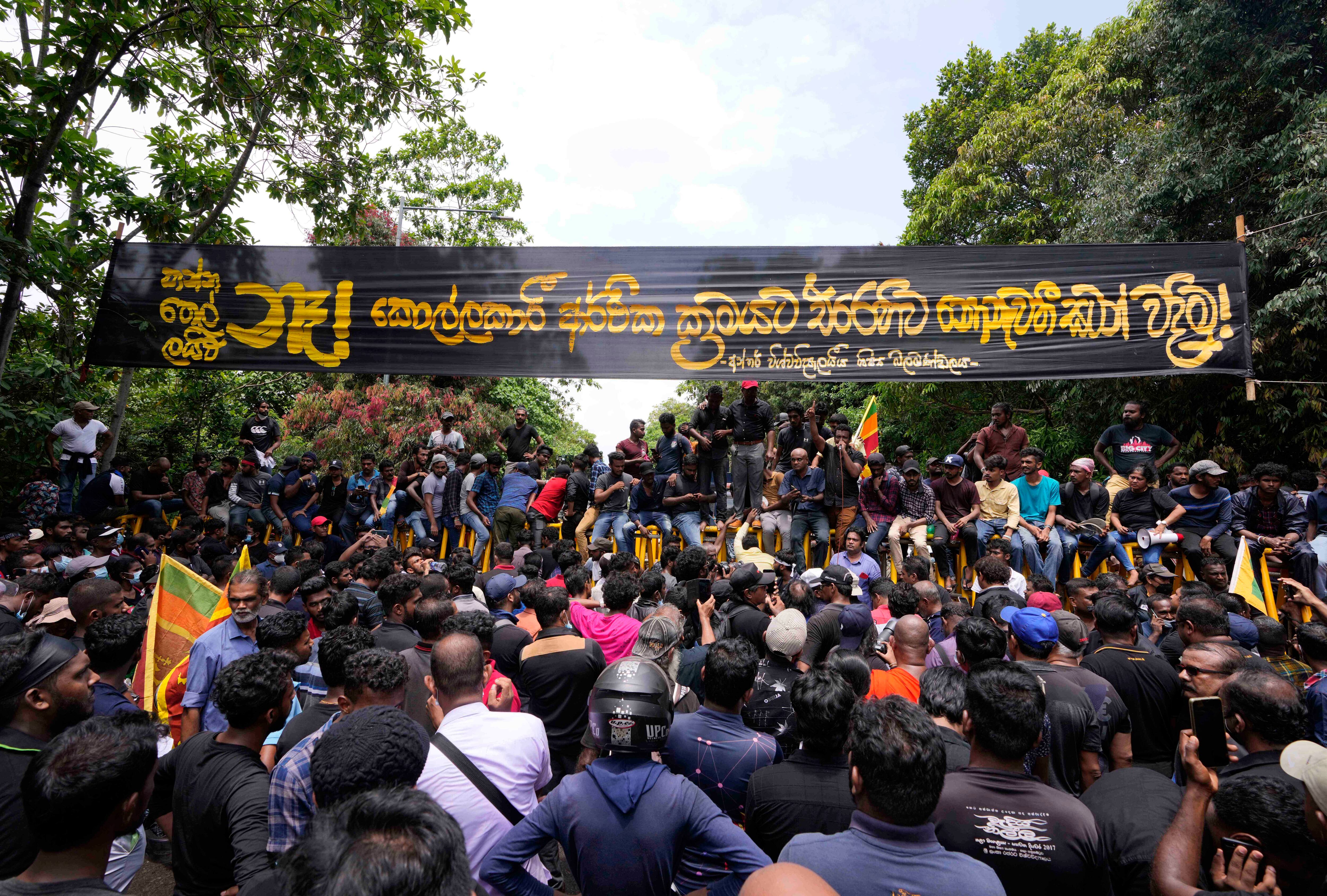 La protesta comenzó el jueves luego que un vicepresidente del parlamento apoyado por el gobierno fue electo en la legislatura por un margen amplio, en lo que fue visto como una victoria clave para la coalición gobernante. Separadamente, manifestantes han estado ocupando la entrada de la oficina del presidente en Colombo, la capital, por 28 días en demanda de la renuncia de Rajapaksa y su poderosa familia.