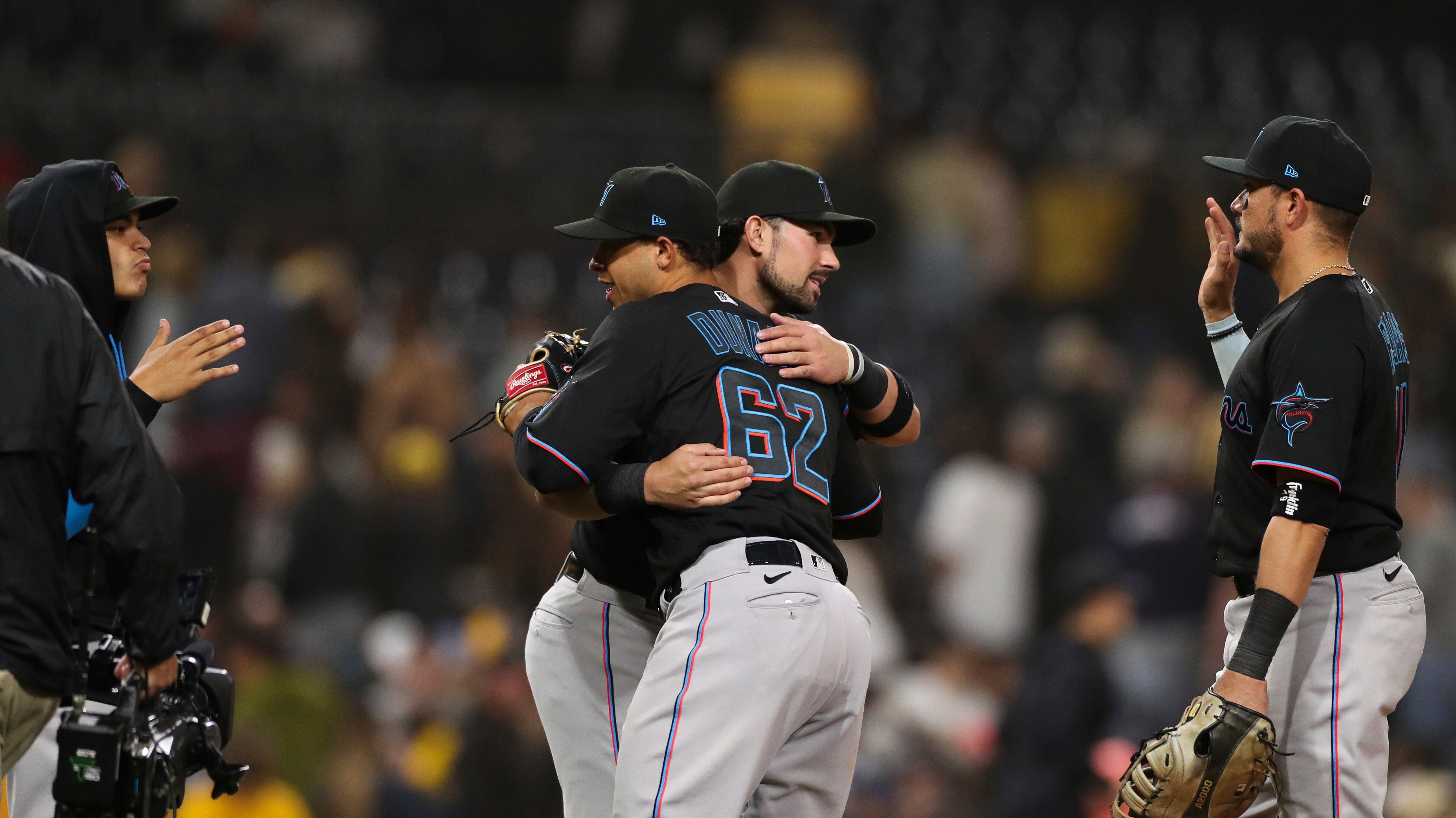 SAN DIEGO (AP) — Joe Dunand, sobrino de Alex Rodríguez, disparó un jonrón al tercer lanzamiento que le hicieron en las mayores, y añadió un doble durante el encuentro que los Marlins de Miami ganaron el sábado 8-0 a los Padres de San Diego.
