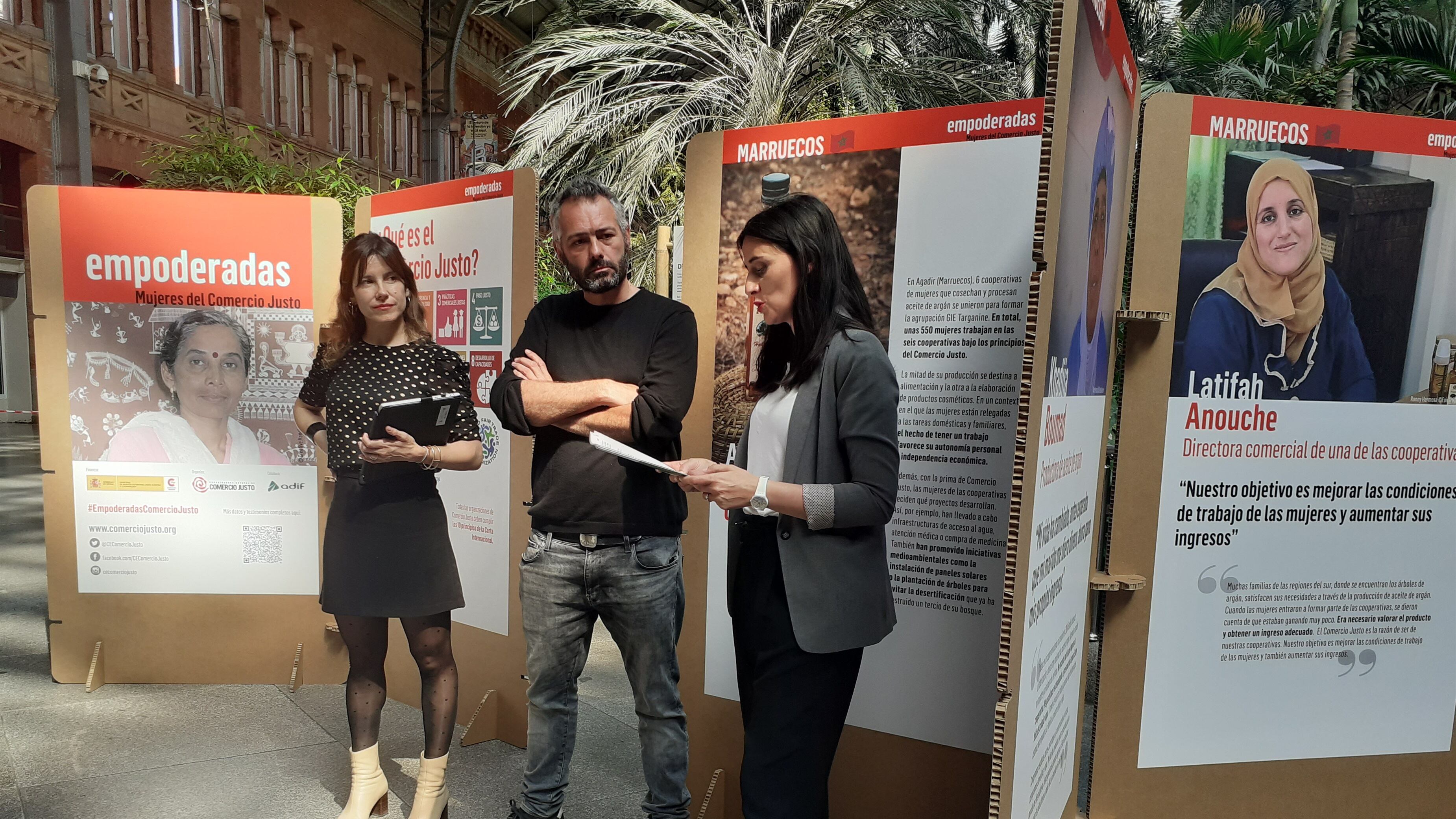 La estación Madrid Puerta de Atocha acoge hasta el próximo 22 demayo una exposición fotográfica sobre el empoderamiento de mujeres trabajadoras de cooperativas de comercio justo de Marruecos, Nicaragua e India.