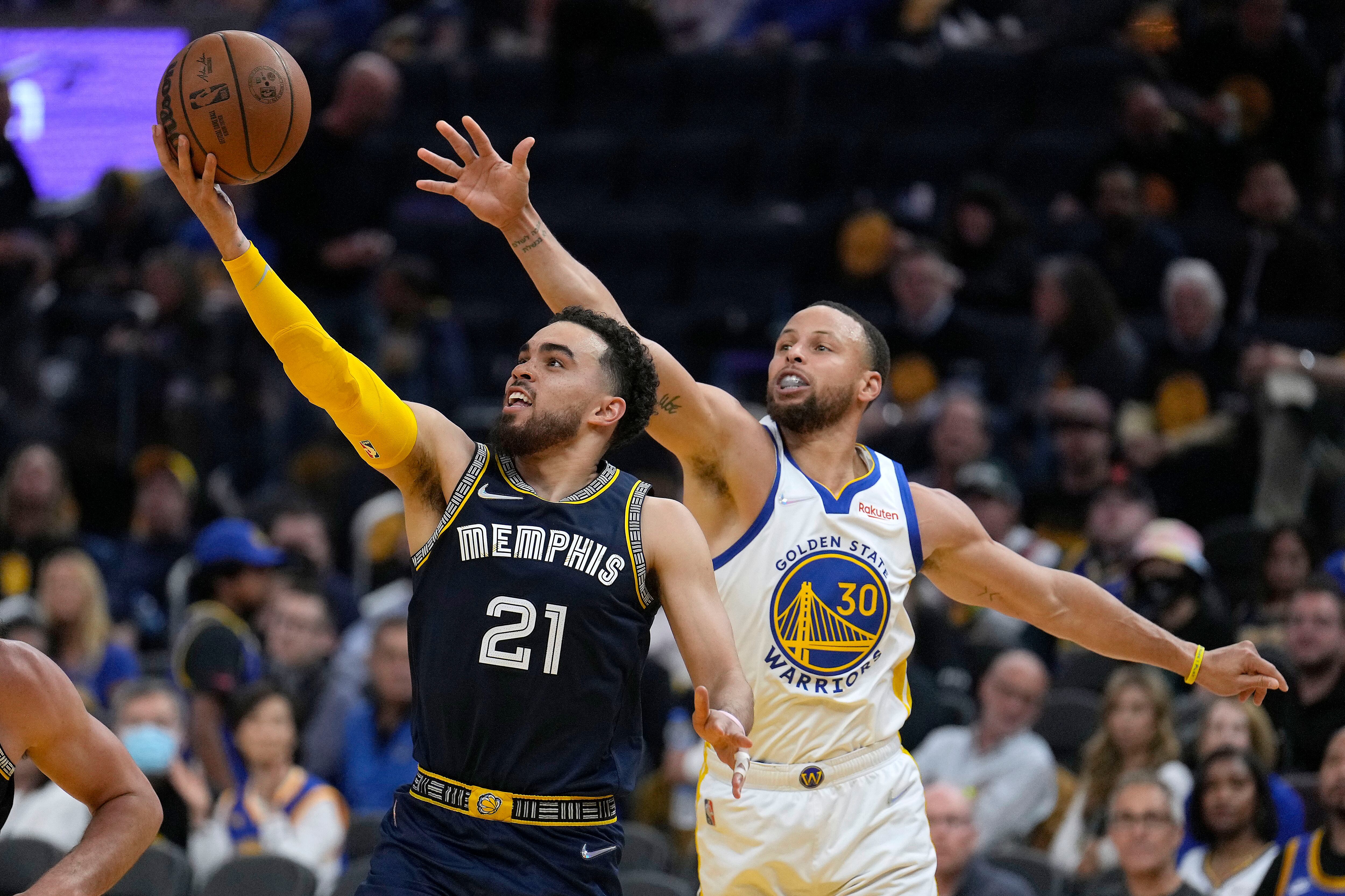 Andrew Wiggins totalizó 17 puntos y 10 rebotes y Klay Thompson encestó 14 a pesar de fallar sus siete intentos desde la línea de triples para unos Warriors que no tuvieron que enfrentar al onmipresente Morant en esta ocasión. El base de los Grizzlies fue baja por molestias en su rodilla derecha tras un agarrón de Jordan Poole cuando trataba de alcanzar una bola perdida al final del tercer juego de la serie.