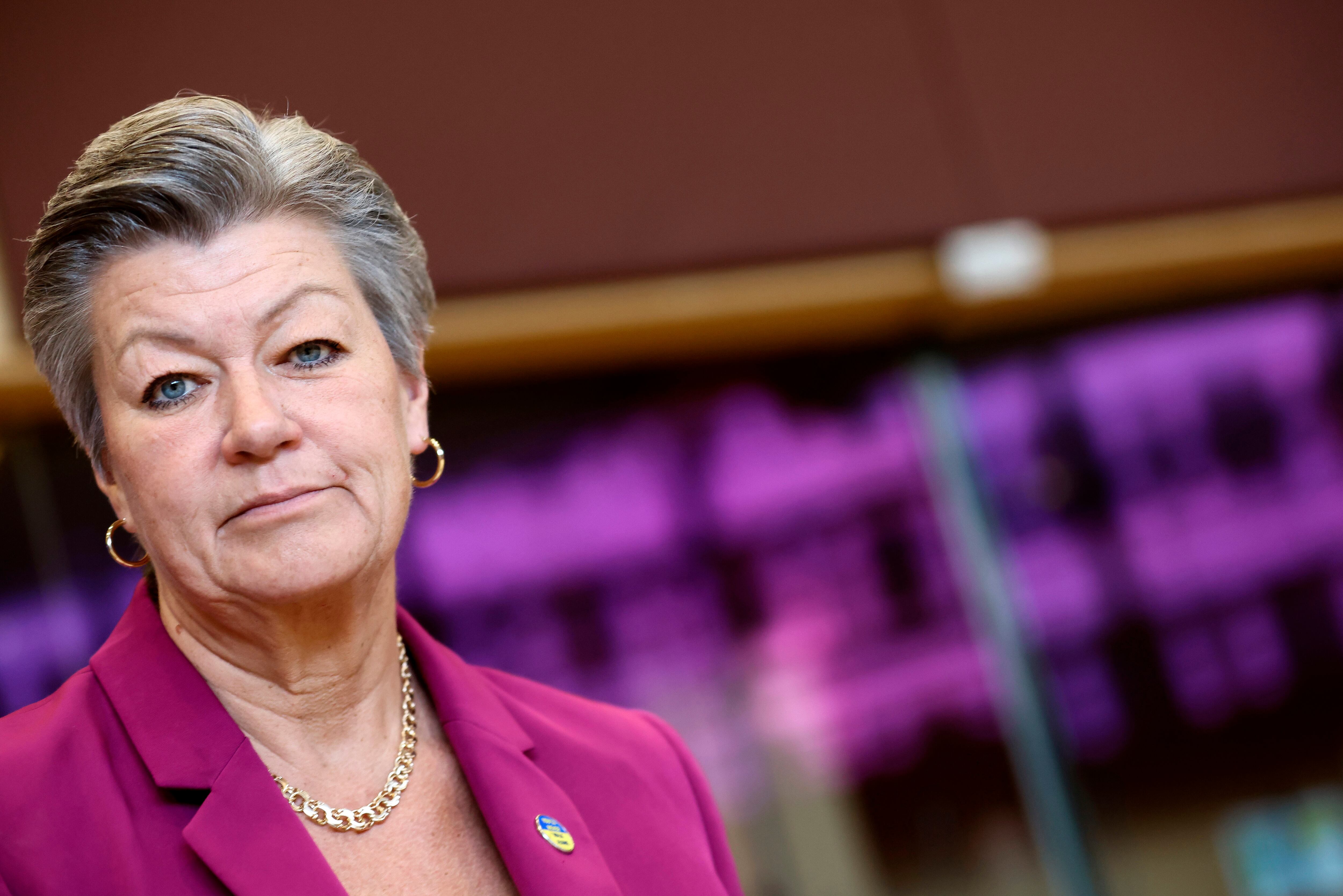 La comisaria europea para Asuntos de Interior, Ylva Johansson, llega a la sede de la UE en Bruselas, el miércoles 27 de abril de 2022. (Kenzo Tribouillard, Pool Photo vía AP) (KENZO TRIBOUILLARD/AP)