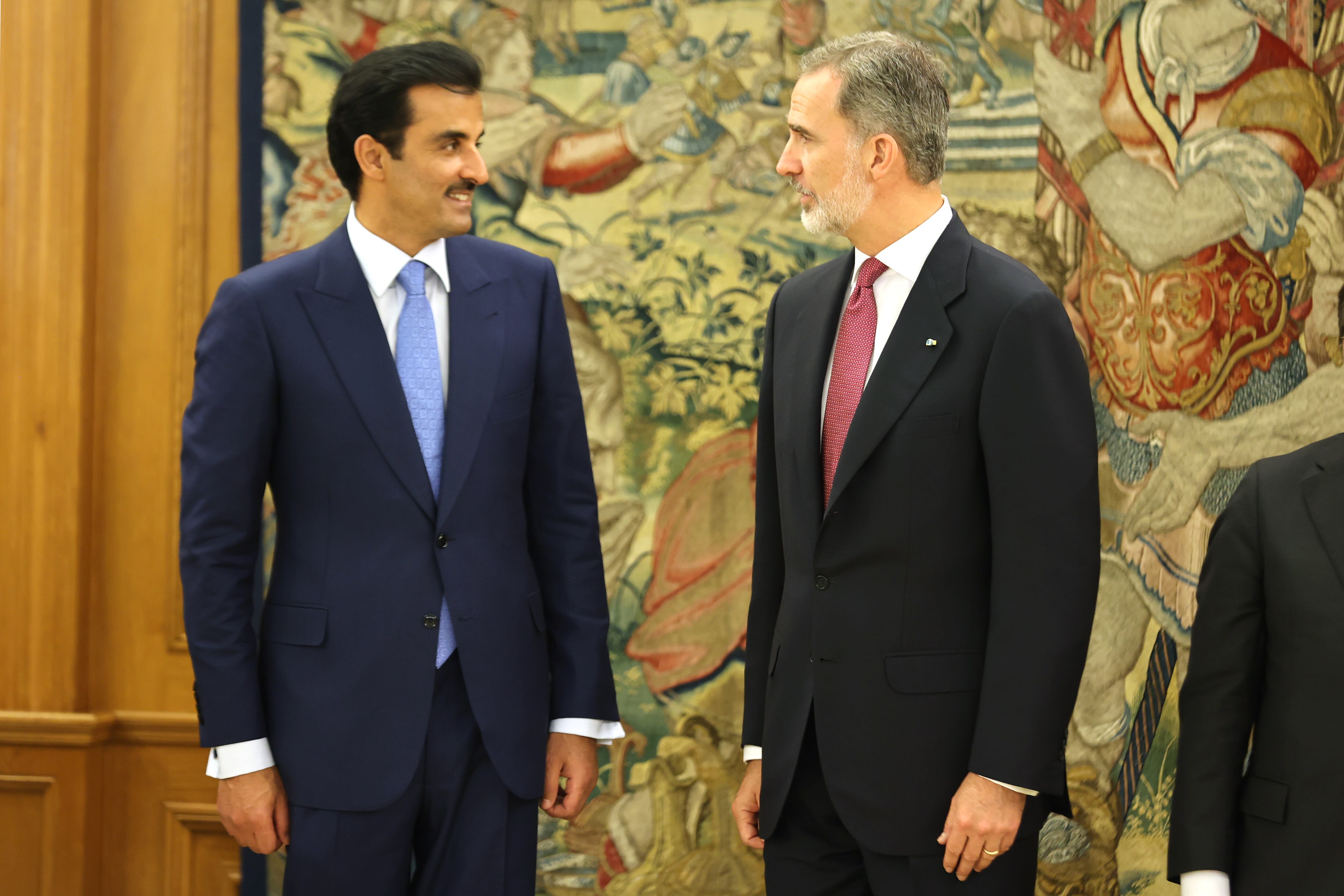 Por otra parte, el emir ha aprovechado para felicitar al Rey y los españoles por la clasificación de la selección española para el Mundial que acogerá Qatar a finales de este año, a cuya inauguración el 21 de noviembre ha invitado a Don Felipe y Doña Letizia a asistir así como a los partidos que les interesen.