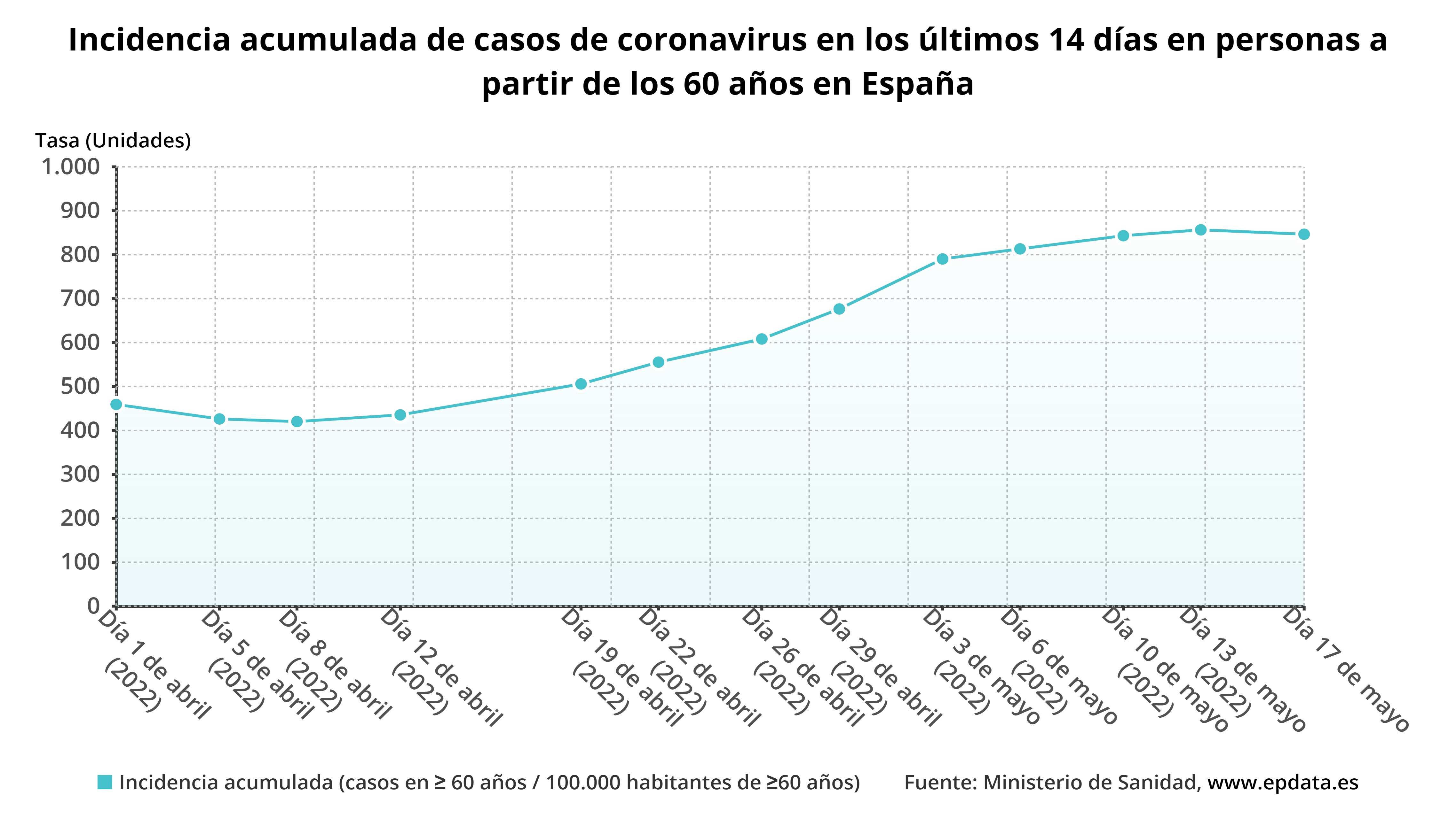 Respecto a la incidencia media actual de contagios en España en los últimos 14 días en personas mayores de 60 años, el informe muestra ligero descenso, situándose en los 846,55 casos por cada 100.000 habitantes, en comparación con los 856,56 notificado el pasado viernes por el departamento dirigido por Carolina Darias. En las pasadas dos semanas se ha registrado un total de 104.278 positivos en este grupo de edad.