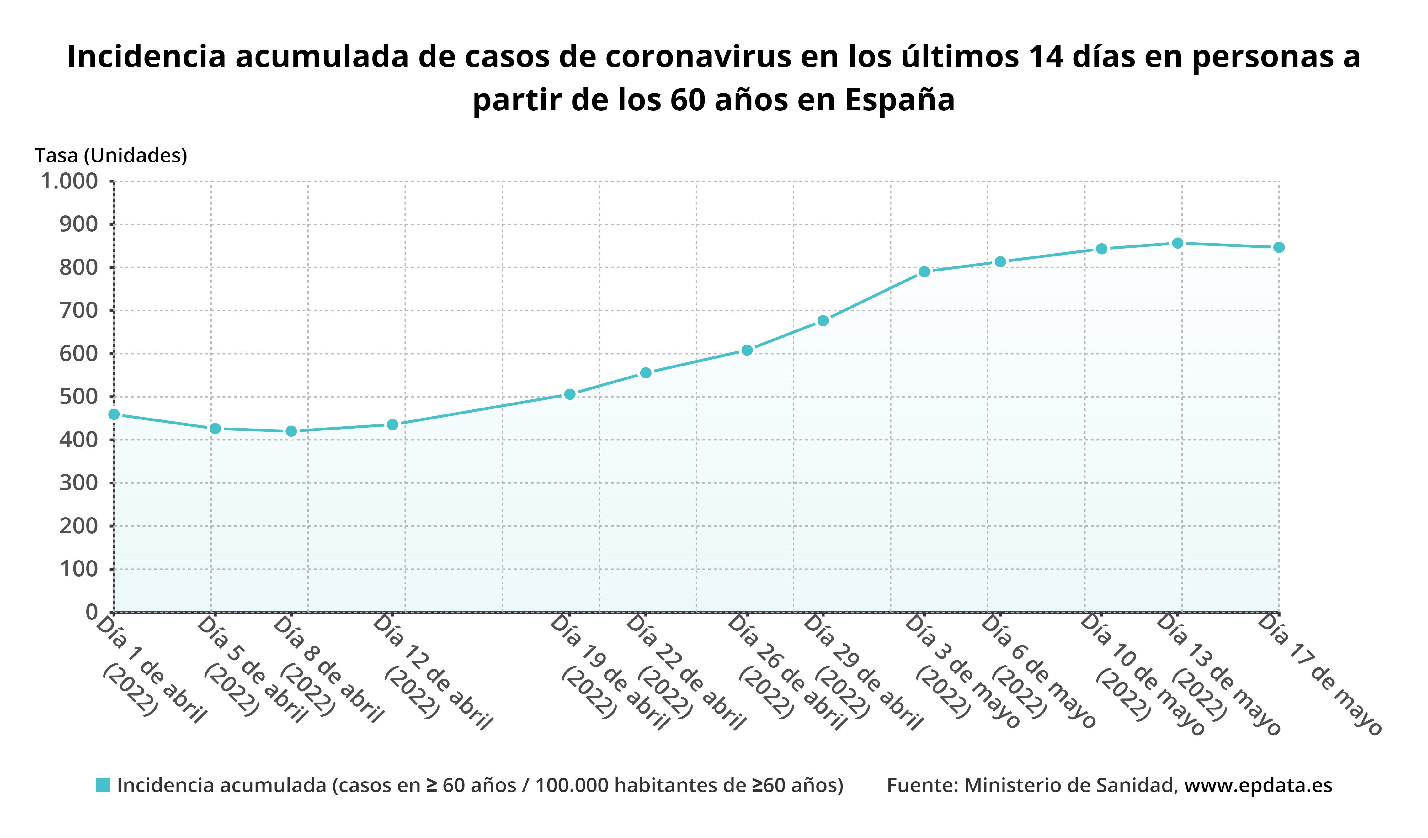 Respecto a la incidencia media actual de contagios en España en los últimos 14 días en personas mayores de 60 años, el informe muestra ligero descenso, situándose en los 846,55 casos por cada 100.000 habitantes, en comparación con los 856,56 notificado el pasado viernes por el departamento dirigido por Carolina Darias. En las pasadas dos semanas se ha registrado un total de 104.278 positivos en este grupo de edad.