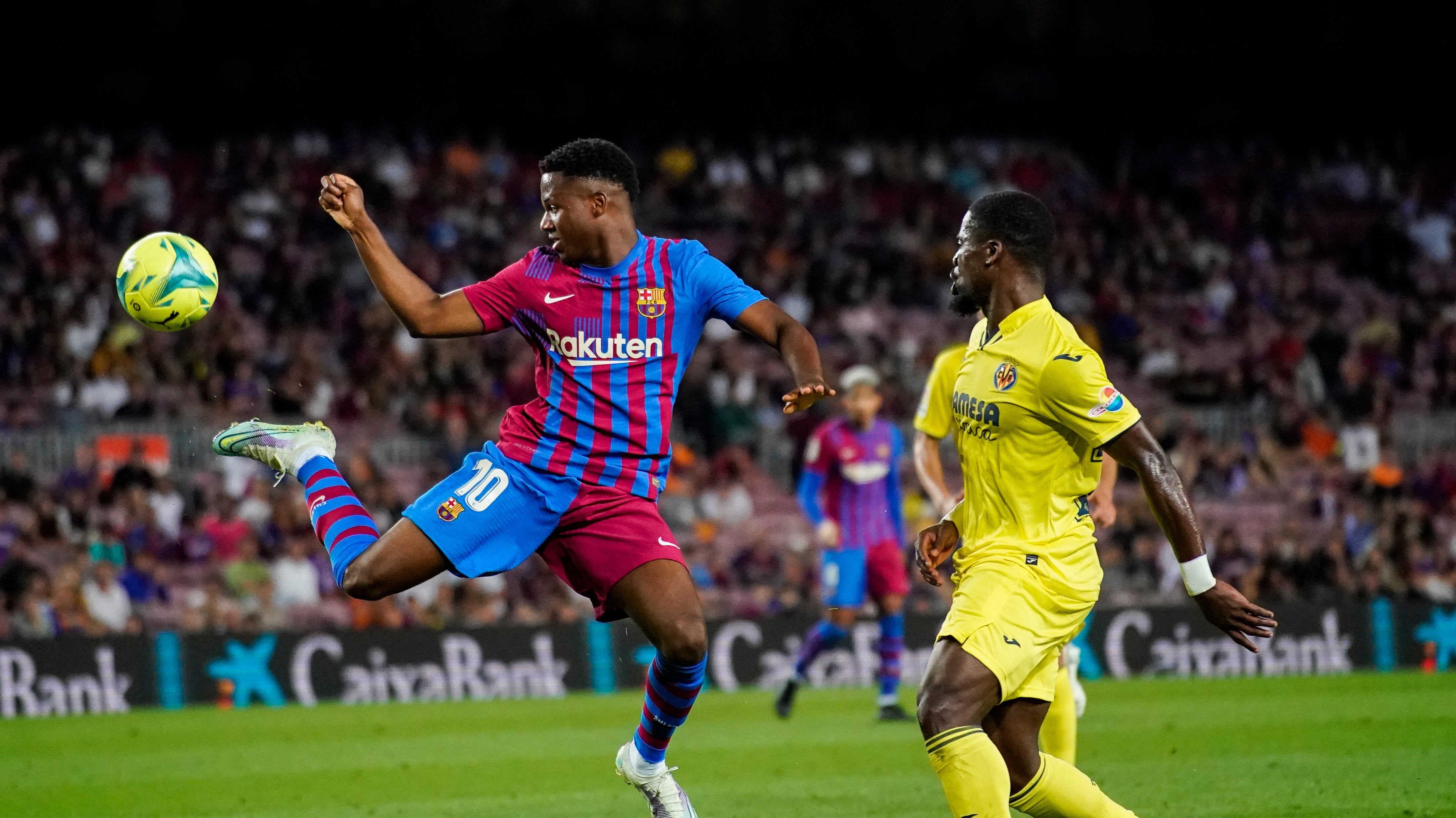Ansu Fati (izquierda) del Barcelona durante el partido contra el Villarreal por la Liga española, el 22 de mayo de 2022. (AP Foto/Joan Mateu Parra) AP (Joan Mateu Parra/AP)