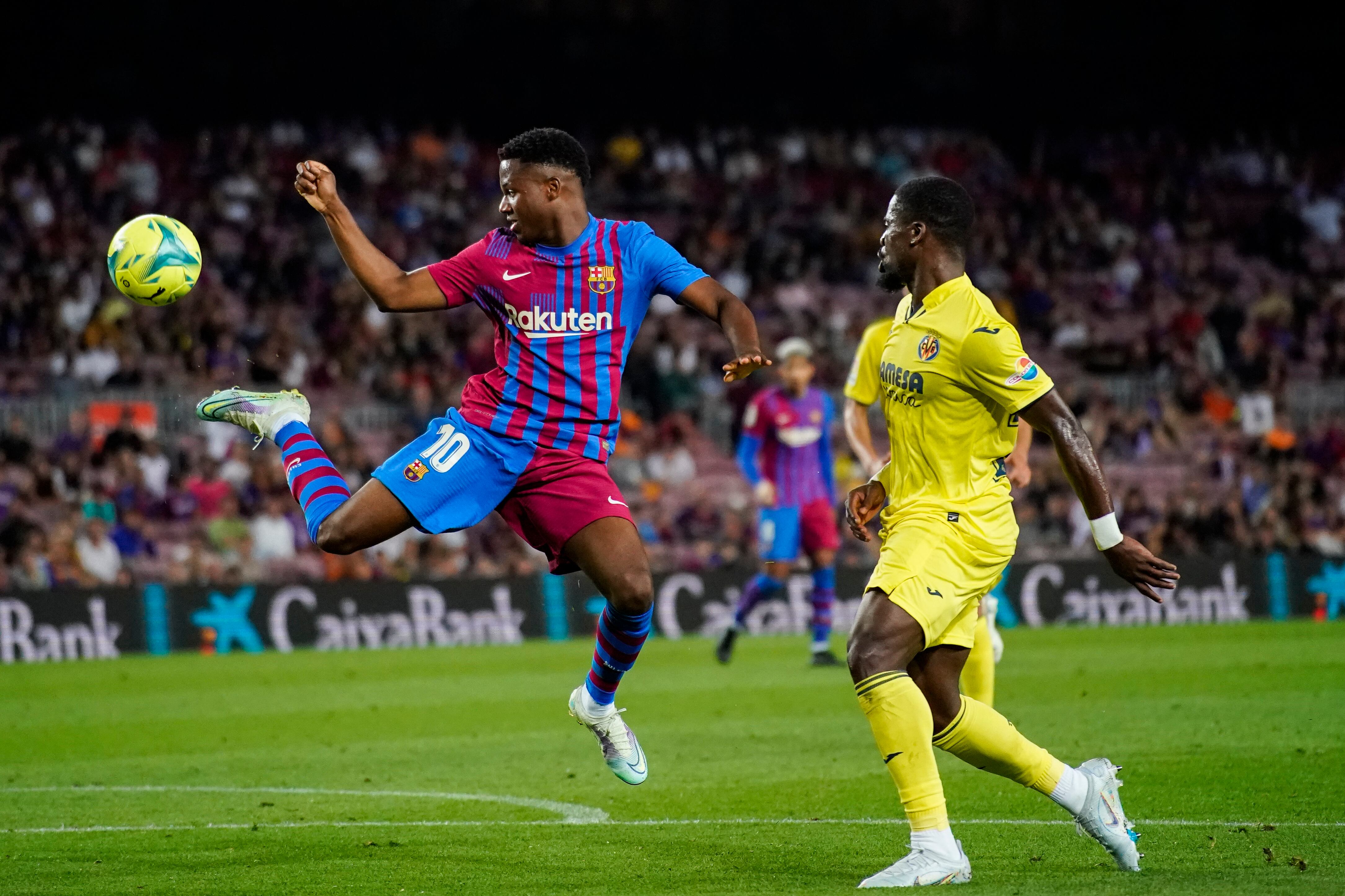 Ansu Fati (izquierda) del Barcelona durante el partido contra el Villarreal por la Liga española, el 22 de mayo de 2022. (AP Foto/Joan Mateu Parra) AP (Joan Mateu Parra/AP)