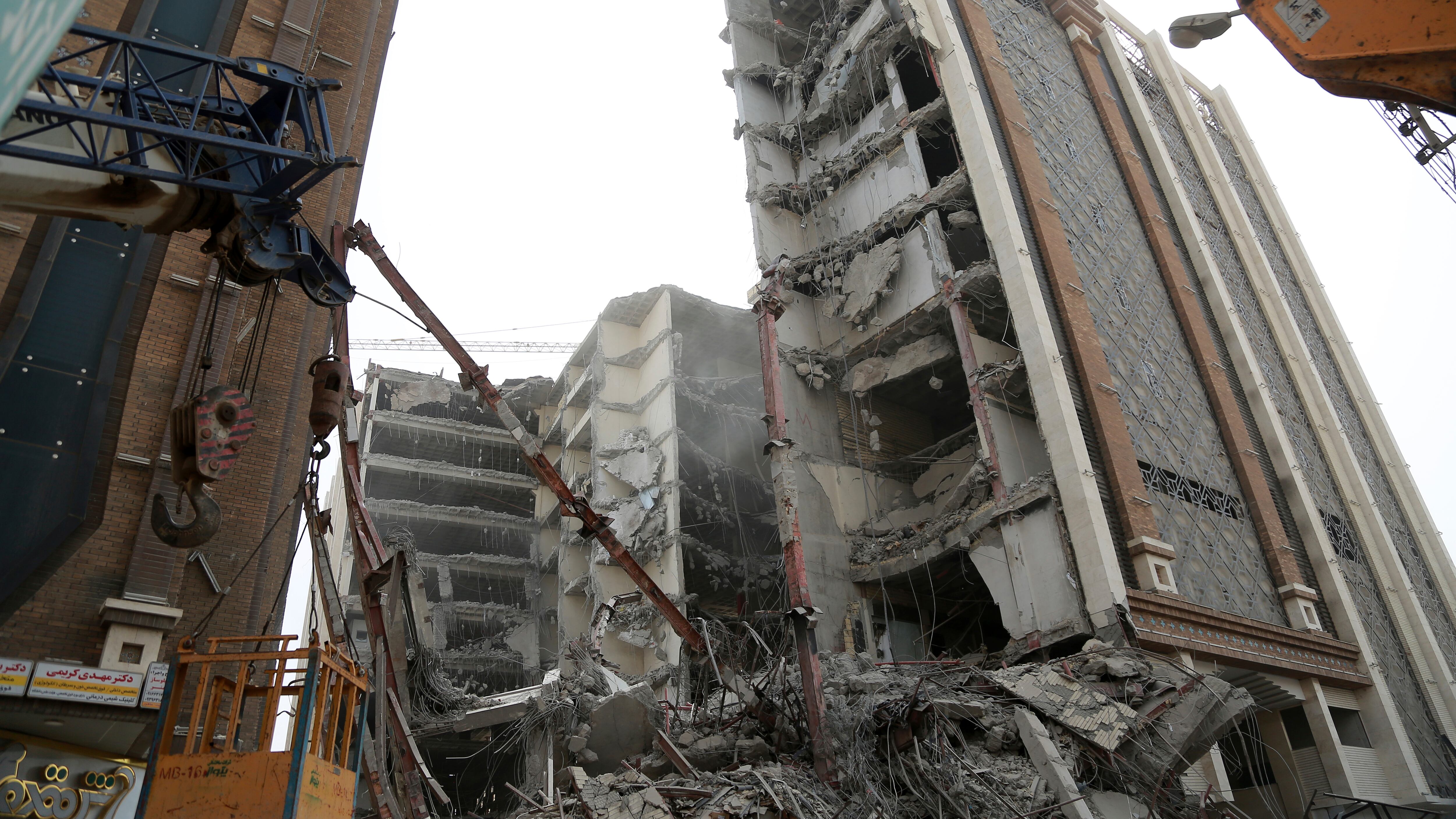 En esta imagen, distribuida por la agencia noticiosa Fars, vista de un edificio comercial de 10 plantas en construcción que se vino abajo matando a varias personas en la ciudad suroccidental de Abadán, en Irán, el 23 de mayo de 2022. (Mohammad Amin Ans AP (Mohammad Amin Ansari/AP)