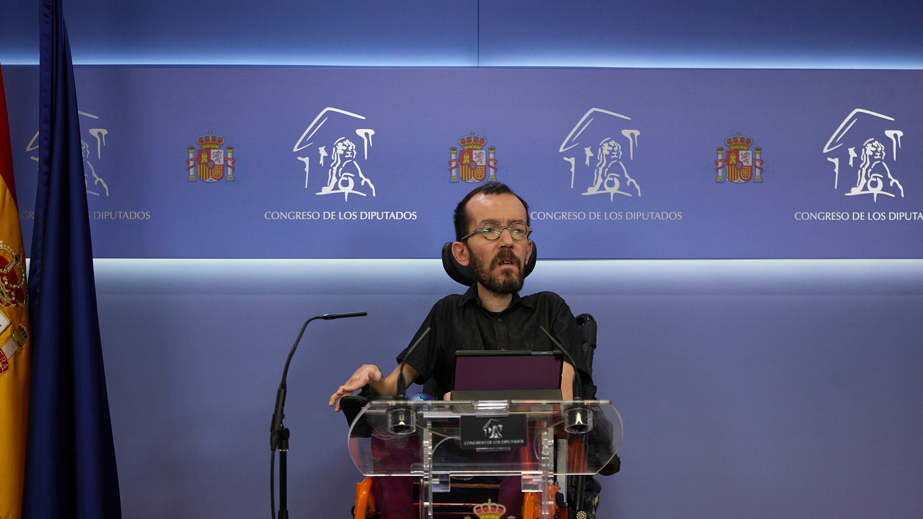 El portavoz de Unidas Podemos en el Congreso, Pablo Echenique, interviene en una rueda de prensa previa a una Junta de Portavoces, en el Congreso de los Diputados, a 24 de mayo de 2022, en Madrid (España). Jesús Hellín - Europa Press (Jesus Hellin 2022/Europa Press)