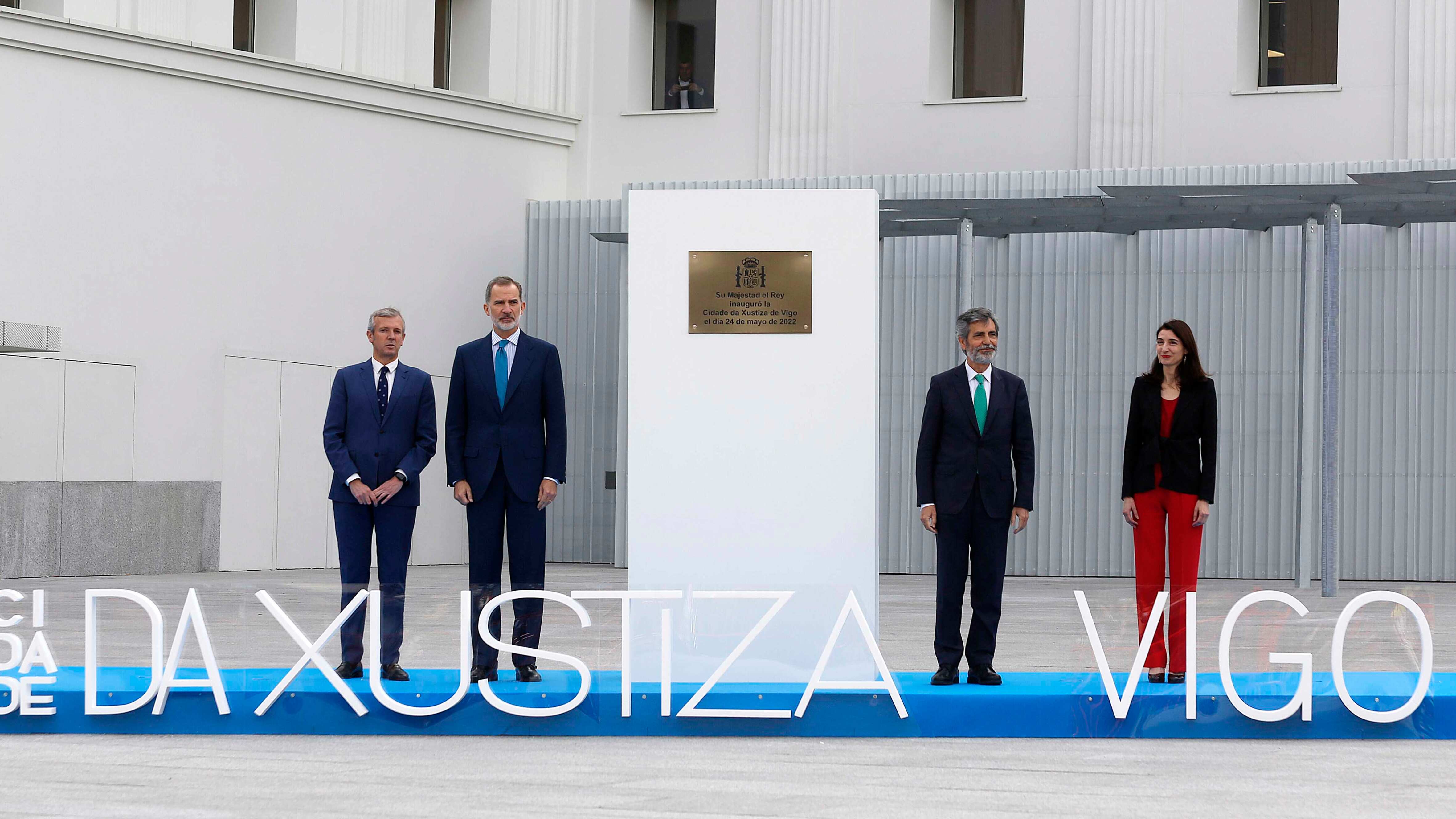 Tras los saludos a su llegada y la 'foto de familia', el monarca, acompañado por la ministra de Justicia, Pilar Llop; el presidente de la Xunta, Alfonso Rueda; el alcalde de Vigo, Abel Caballero; el presidente del Consejo General del Poder Judicial (CGPJ), Carlos Lesmes; y numerosas autoridades políticas y de la judicatura, ha visitado el edificio reformado por el equipo del arquitecto Alfonso Penela y ha mantenido un encuentro de trabajo.